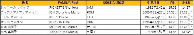 ▼出場選手発表第1弾:男子110mハードル、男子400mハードル、女子100mハードル