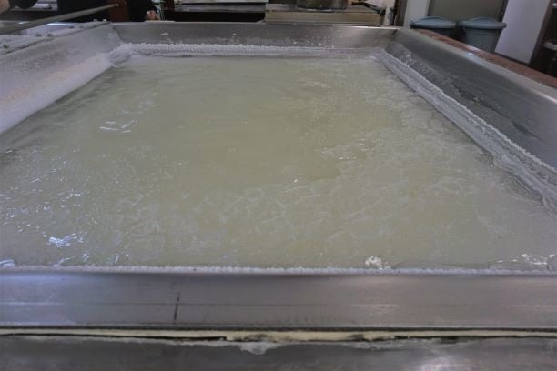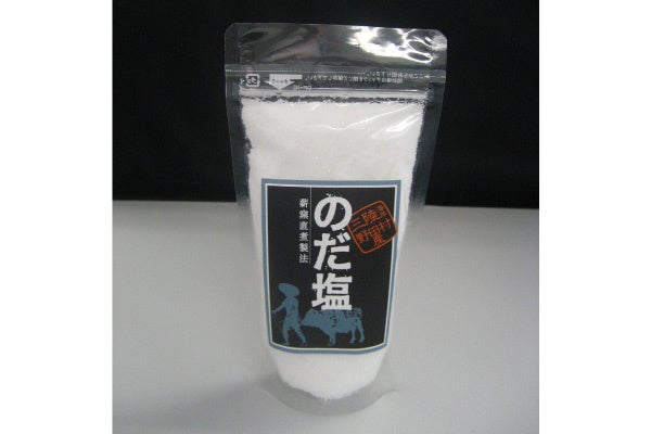 野田村に古くから伝わる直煮製法で作られたまろやかな味わいの自然塩。昔から用いられていた松の木を燃料にして、鉄鍋に海水を注ぎ足しながら4日間じっくりと煮詰め、約200ℓの海水から40キロ前後の塩を作り出します。薪割から釜の火加減調整のほか、塩分濃度や乾燥の温度・湿度までしっかりと管理しています。職人がまろやかさにこだわり、手塩にかけて作られています。