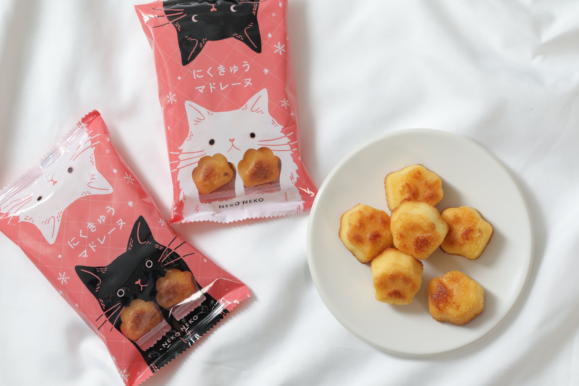 ・内容:ふぃにゃんシェ 4個入(プレーン&ショコラ)、ねこねこバタークッキー 15枚入り、にくきゅうマドレーヌ(冬パッケージ)、とらねこポップコーン