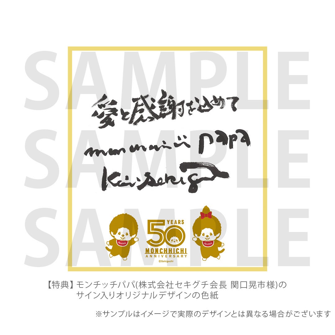 ご購入特典として、モンチッチパパ(株式会社セキグチ会長 関口晃市様)のサイン入り色紙をプレゼントいたします。