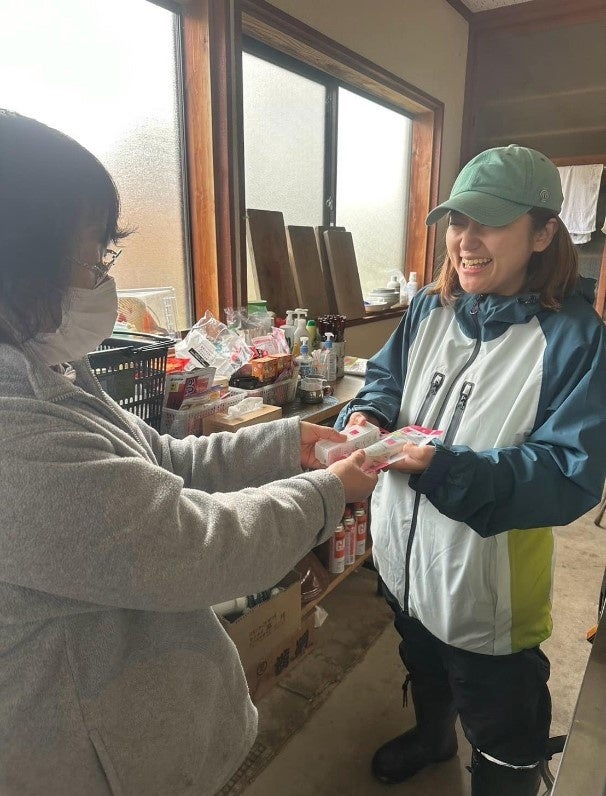 寒さだけでなく、積雪も一層厳しい能登半島の冬。地震に次いで発生した水害の影響で復旧・復興の目途が立たない最中、被災住民のストレス軽減に資する、貴重な商品をご提供いただき誠にありがとうございました。ご提供頂いた商品類は「災害NGO結」様を介して、日々の訪問活動時や民間団体が運営する仮設銭湯施設など、様々な場面で配布させていただきました。女性に限らず男性にも人気があり、特にお風呂上りの使用は効果が高く感じられ、大変好評でした。