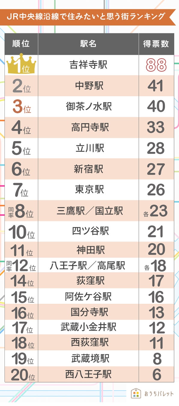 | 「JR中央線沿線で住みたいと思う街」ランキング |