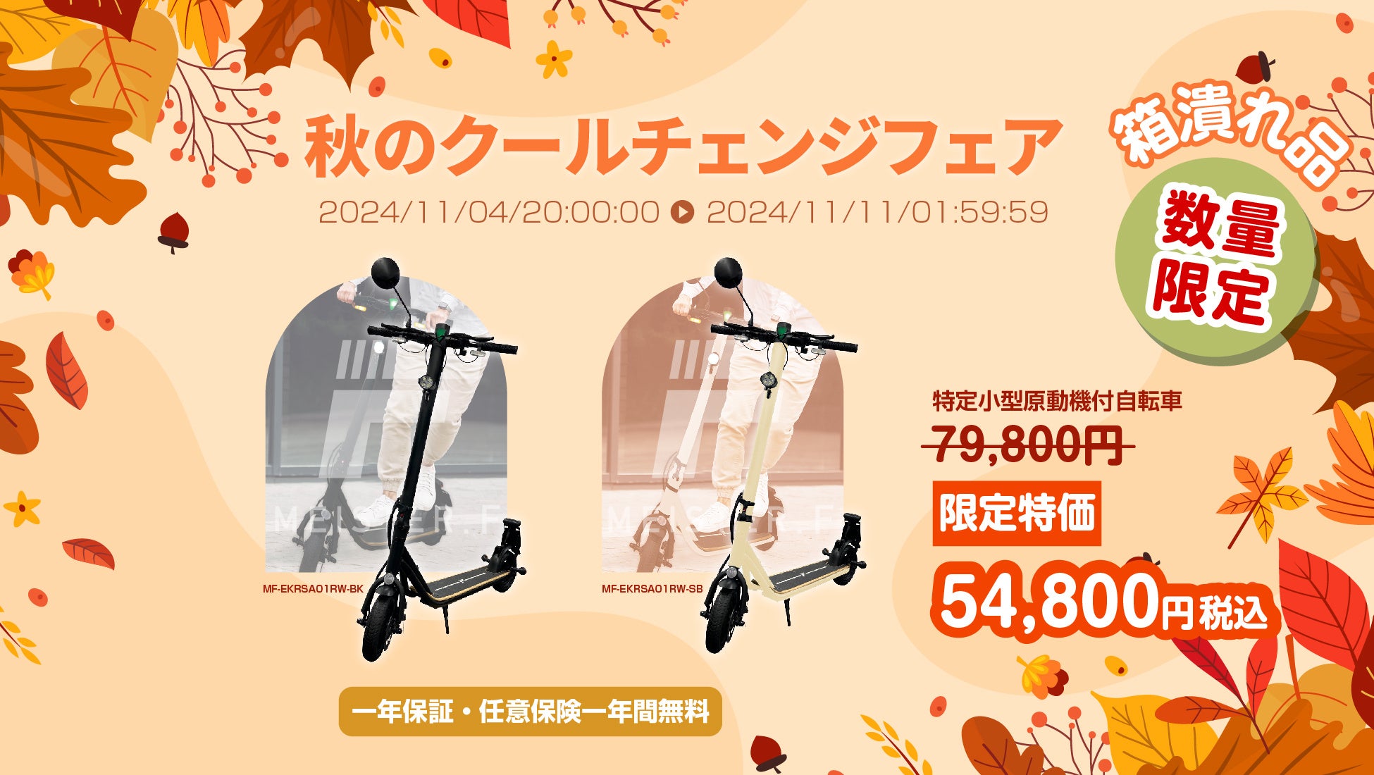 秋の涼しさが心地よい季節になりましたね。この秋、楽天『Show !t』ではクールチェンジフェアを開催中!特定小型電動キックボードを、秋の特別価格で手に入れるチャンスです。初心者にもぴったりなブランドから、今ならフロントバッグが無料で付属し、さらに輪行バッグもお得な価格で購入可能です。期間中は1年間の任意保険無料キャンペーンも継続中!スペシャルセットもご用意していますので、ぜひこの機会にお得なセットをご活用ください。