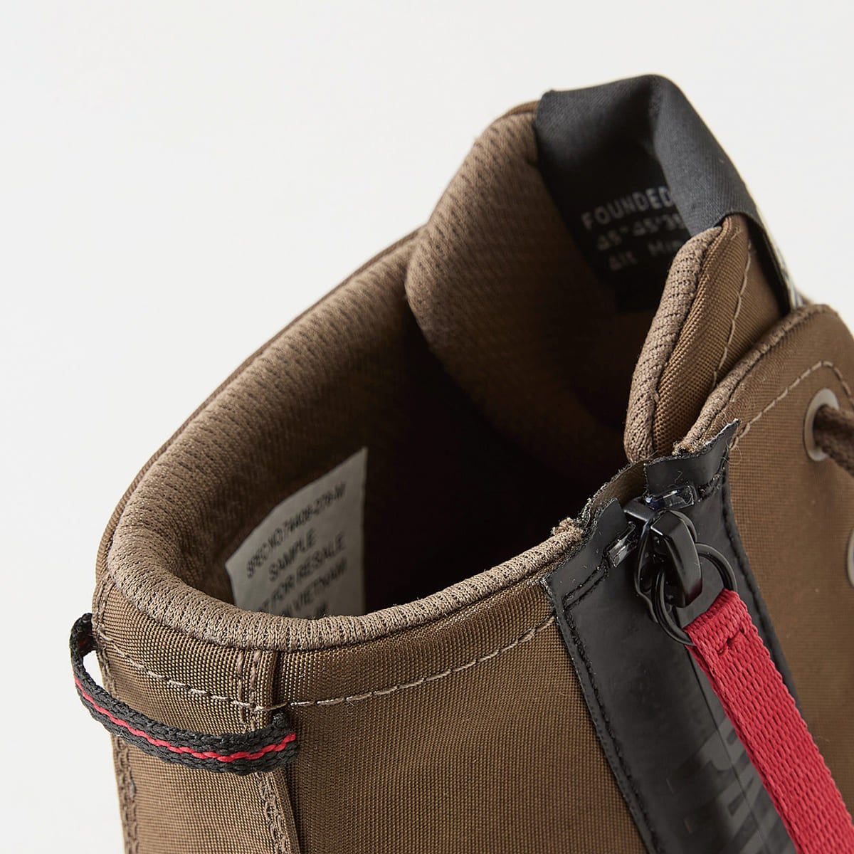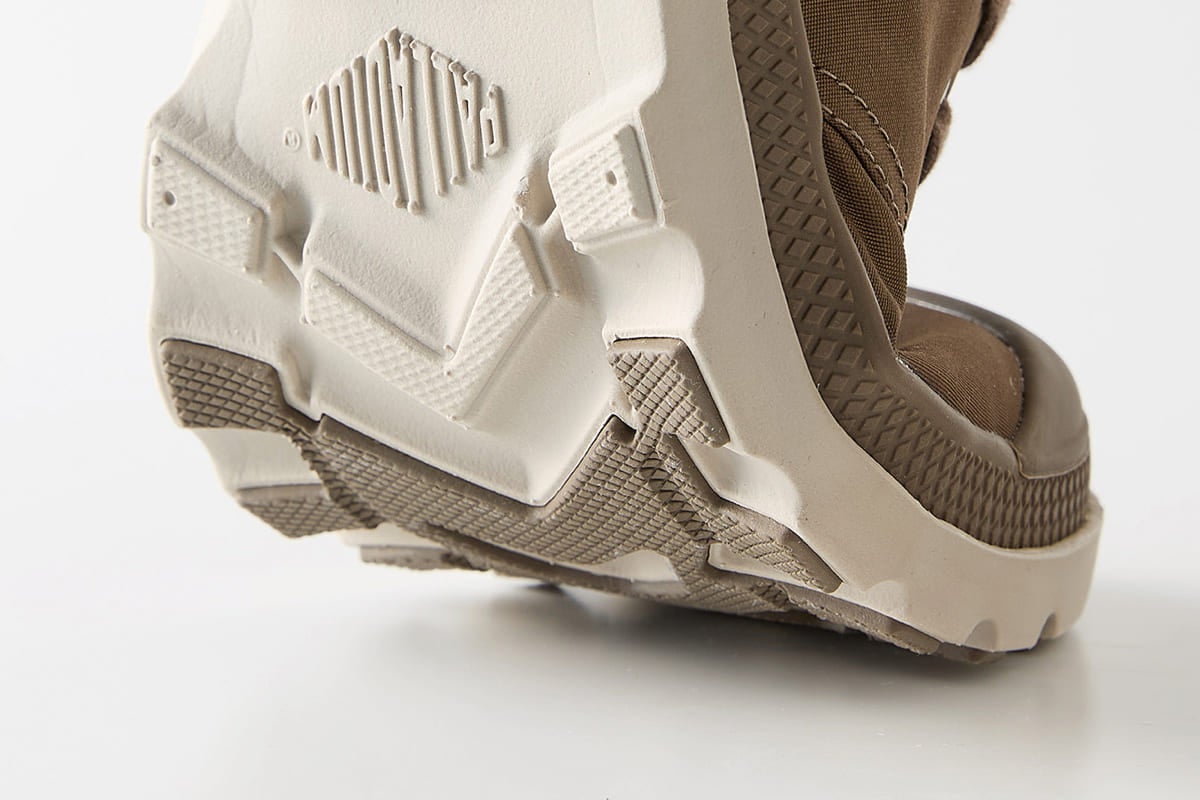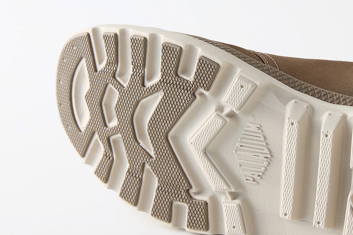 1947年、フランスの外国人部隊が砂漠地帯を行軍するために開発したPAMPA(パンパ)。ブランドヘリテージとして70年以上にわたり引き継いだミリタリーテイストあふれる凹凸アウトソールがパラディウムの大きな特徴。そのアウトソールに、フェスシーンやアウトドアでも活躍する防水アッパーを合わせたのが、PAMPA HI SEEKER(パンパハイ シーカー)。