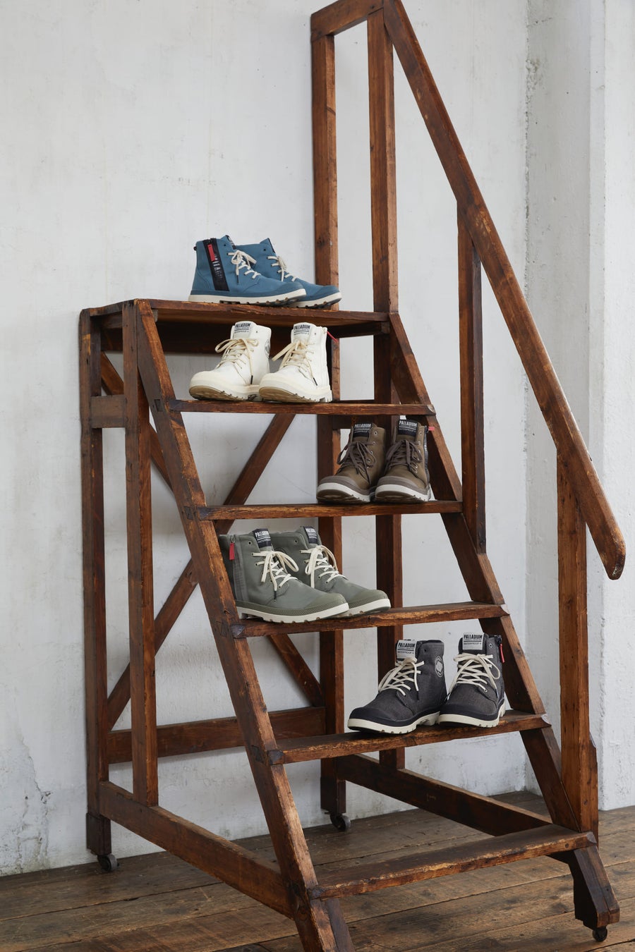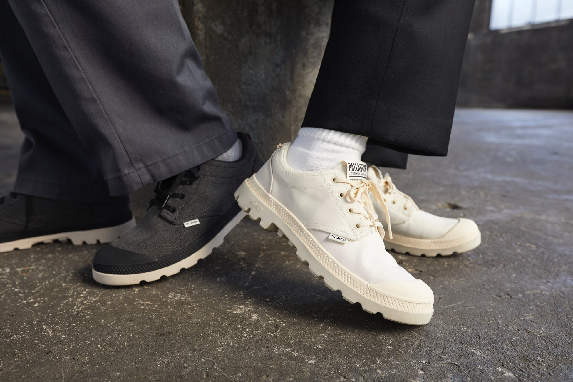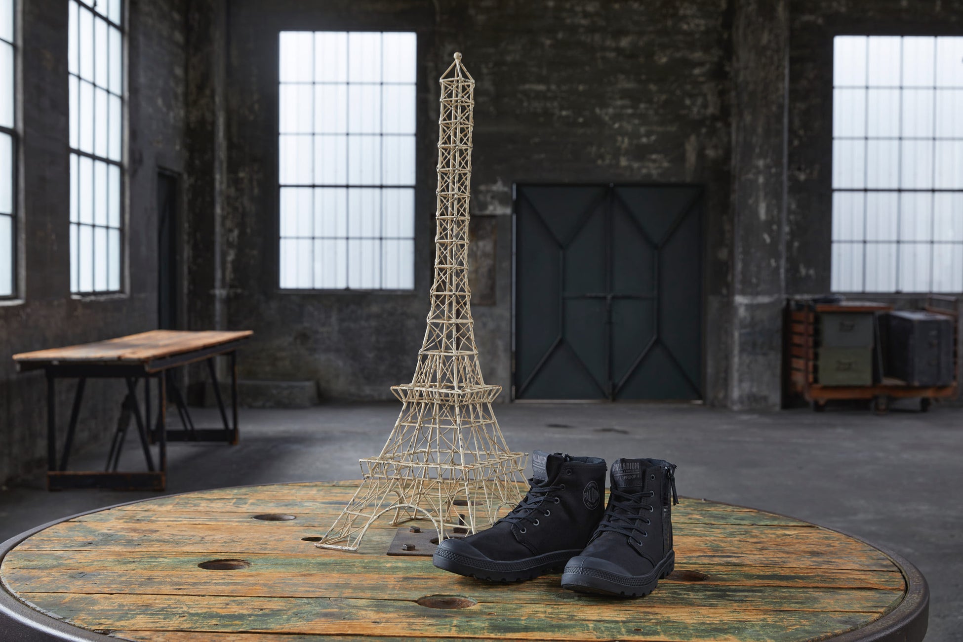 PALLADIUM(パラディウム)は、航空機専用のタイヤメーカーとして1920年代にフランスで創業。第二次世界大戦後、その技術を応用しラバーソールブーツの製造をスタート。フランス軍より、砂漠地帯で使用する軍靴というリクエストを受けて、デザートブーツの原型ともいわれる、ブランドのアイコン「PAMPA(パンパ)」シリーズが誕生。70年の歴史を経て、オーセンティック感と特徴的なソールに加え、最先端のデザインを合わせ持つフランス発ブーツスニーカーブランドとして、世界80ヶ国で展開しています。