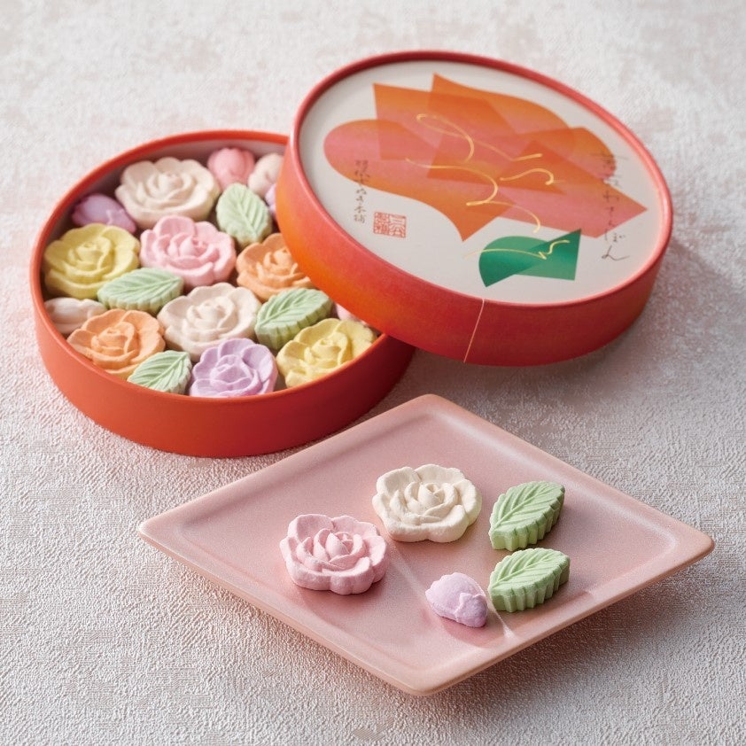 日本三大菓子処である松江にて、茶の湯の文化と共に栄えた和菓子を100年以上に渡って守りぬく老舗の和菓子屋。真っ赤なバラは甘酸っぱいラズベリー餡で出来ており、見た目も華やかな上生菓子。