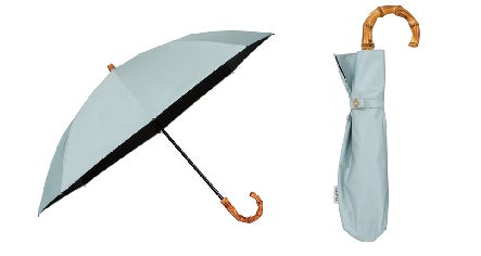 遮光率100%、UPF50+の日傘。留めひもが内側と外側の両方にあるため、長傘としても持ち運ぶことも、折り畳んでコンパクトに収納することも可能です。晴雨兼用のため、夏の不安定な天候にも安心して使えます。