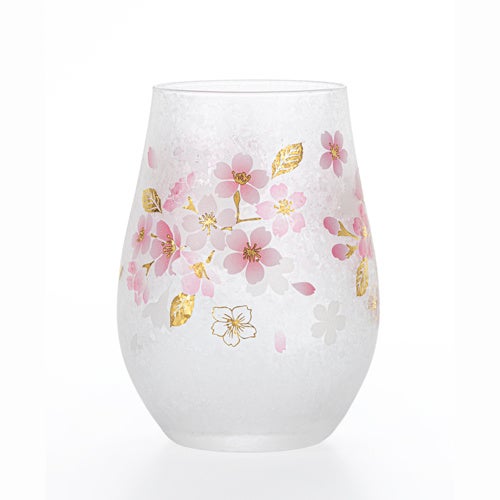 花びらの柔らかな色彩と繊細なグラデーションがやさしいタンブラー。みぞれ仕上げと金彩によるきらめきが上品なデザインです。手に馴染みやすいタンブラー形状は、普段使いのグラスとしておすすめです。