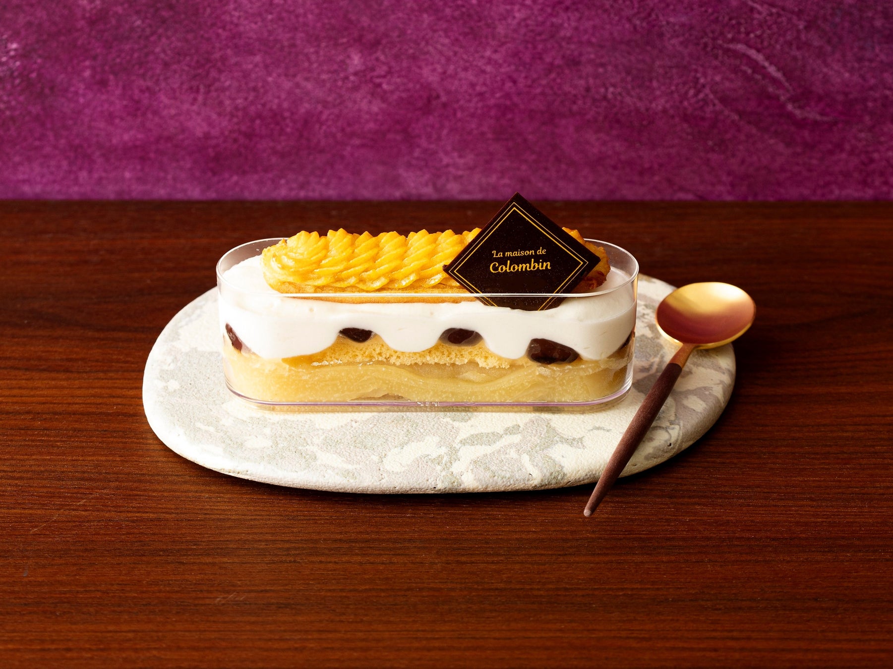 定番スイートポテトをカップデザートにアレンジ。下には羊羹仕立てのお芋とスポンジを入れ、大納言の上に生クリーム、一番上には卵とバターを練り込んで焼き上げた、しっとり濃厚な鳴門金時のスイートポテトを載せました。和洋が融合したおいしいハーモニーを堪能できます。