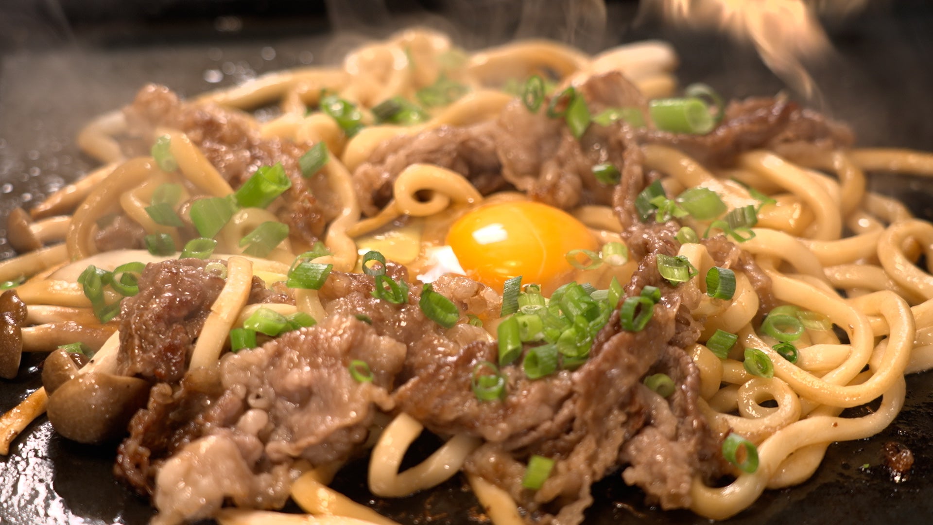 その他にも、えび鉄板焼きや青唐辛子のお好み焼き、牛すき焼きうどんなど、鉄板で作る料理が数々登場。