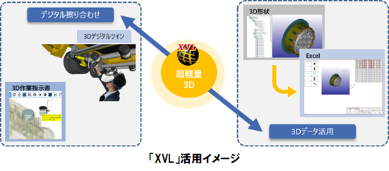 ※XVL: ラティス・テクノロジー株式会社が開発した3Dデータフォーマット。CADデータの精度を維持したまま約1/100のサイズまでファイルを軽量化できる特徴から、製造業の大手では3D CADの普及により蓄積された3Dデータの有効活用を目的に、XVL製品を全社規模で導入するケースが増加、国内外で急速に普及が進んでいる。