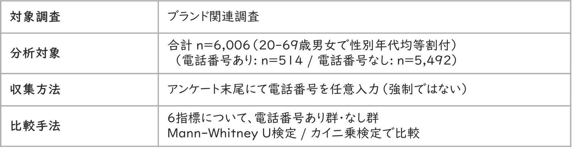 なお、本検証は電話番号の収集そのものを推奨するものではなく、回答品質向上施策の一要素としての関連性を検証することを目的としています。