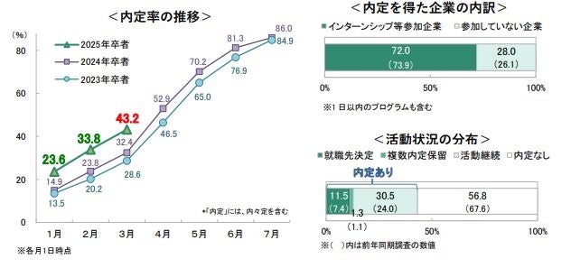 内定率は43.2%。前年同期実績(32.4%)を 10.8ポイント上回る
