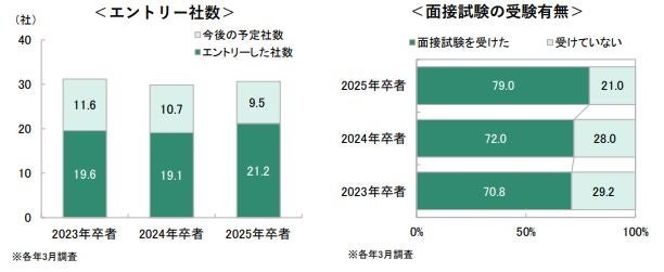 一人あたりのエントリー社数は平均21.2社で、前年同期(19.1社)より2.1社増加