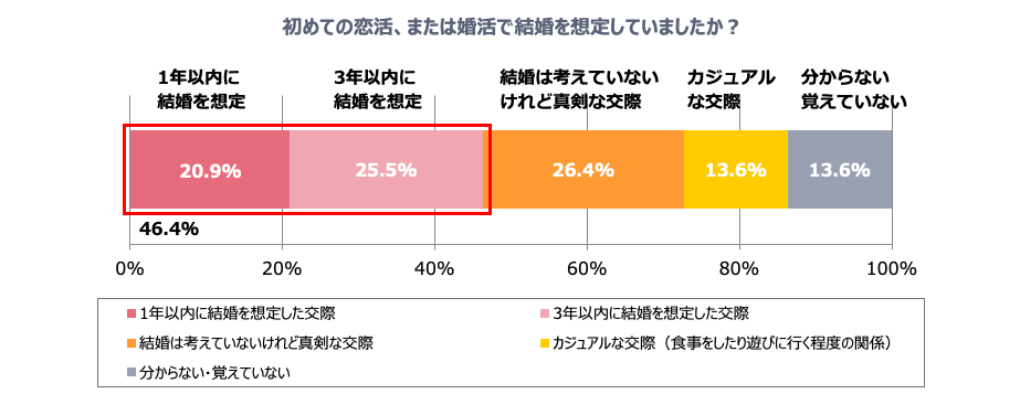 - 初めての恋活、婚活では結婚を想定していた人が半数近く
