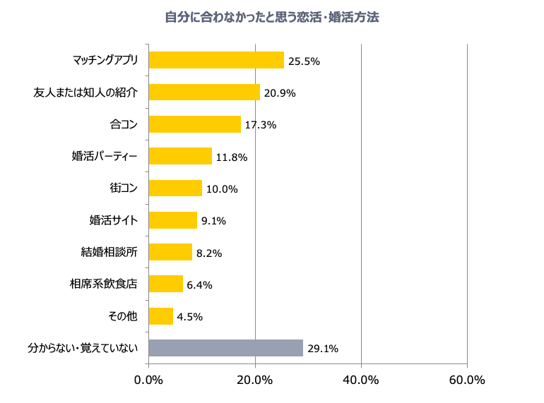 反対に、自分には合わなかったと思う恋活・婚活方法について聞きました。