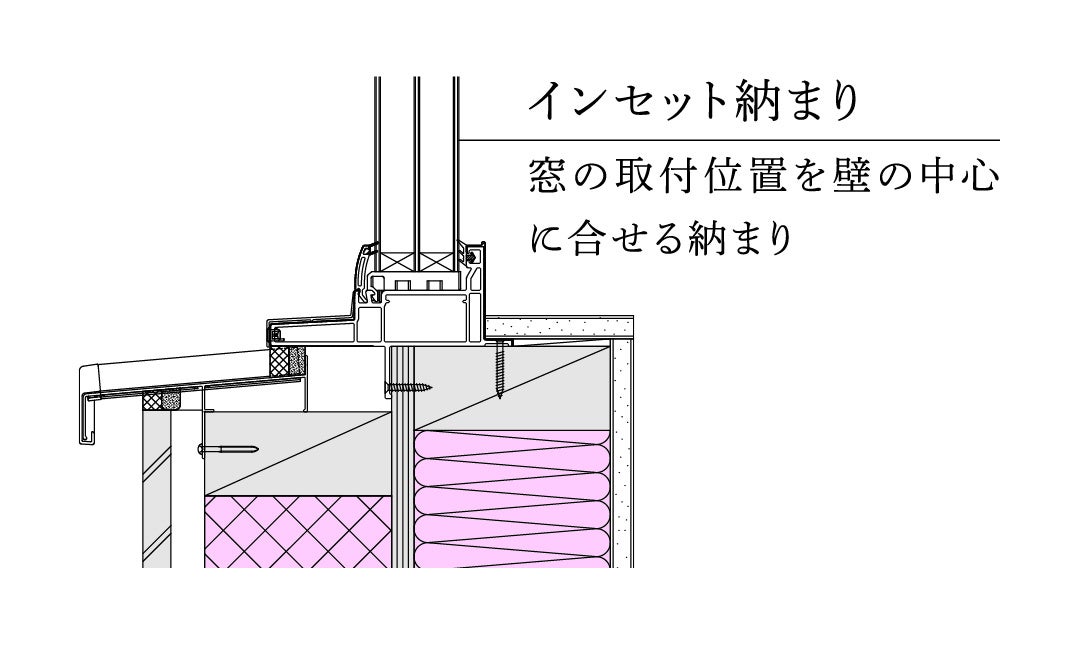 今回「APW 430/APW 430+」のプロジェクト窓の性能面では、トリプルガラス(アルゴンガス入)の空気層を16mmから18mmに拡げることで断熱効果を最大化し、窓全体の断熱性能として約7%(※4)向上しました。優れた熱貫流率で熱の逃げ道を極限まで減らし、日本各地の多様な環境下での冷暖房費低減にも貢献します。また、「APW 430」には高所用すべり出し窓やオペレーターハンドル仕様を追加することで、商品のバリエーションも充実。樹脂フレーム内部に断熱材を充填している「APW430+」には関東以西で多い額縁納まりに対応しやすいアングル付枠の設定を追加し汎用性を高めました。さらに、住宅の高断熱化には欠かせない付加断熱工法(※5)で、窓の取付位置を壁の中心に合わせる「インセット納まり」に対応する水切を新たに設定することで、施工性や水密性などの現場の課題を解決します。