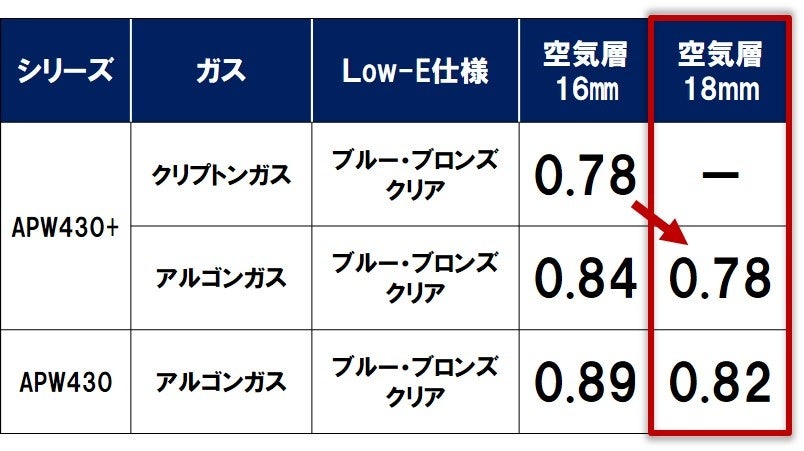 ■空気層16mmから18mmへ変更で断熱性能を最大化