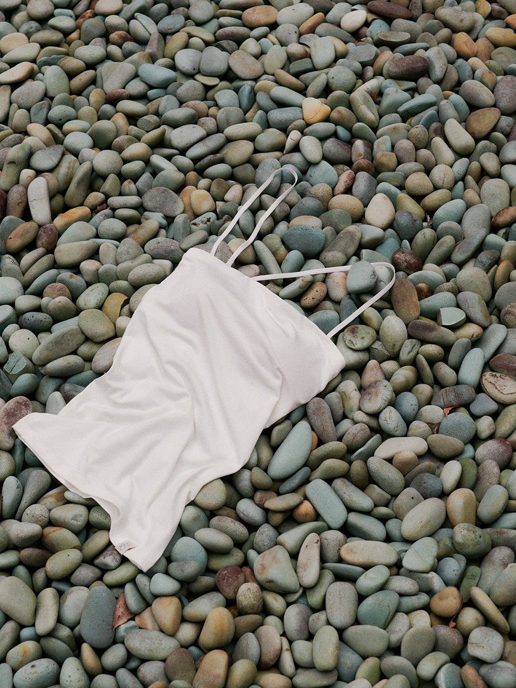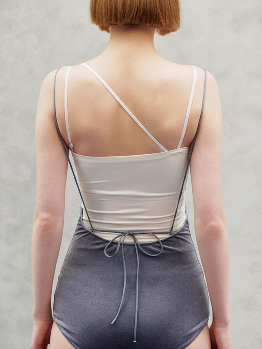 ストラップを取り外しチューブトップとしても着用可能な、カップ付きキャミソールインナー。
