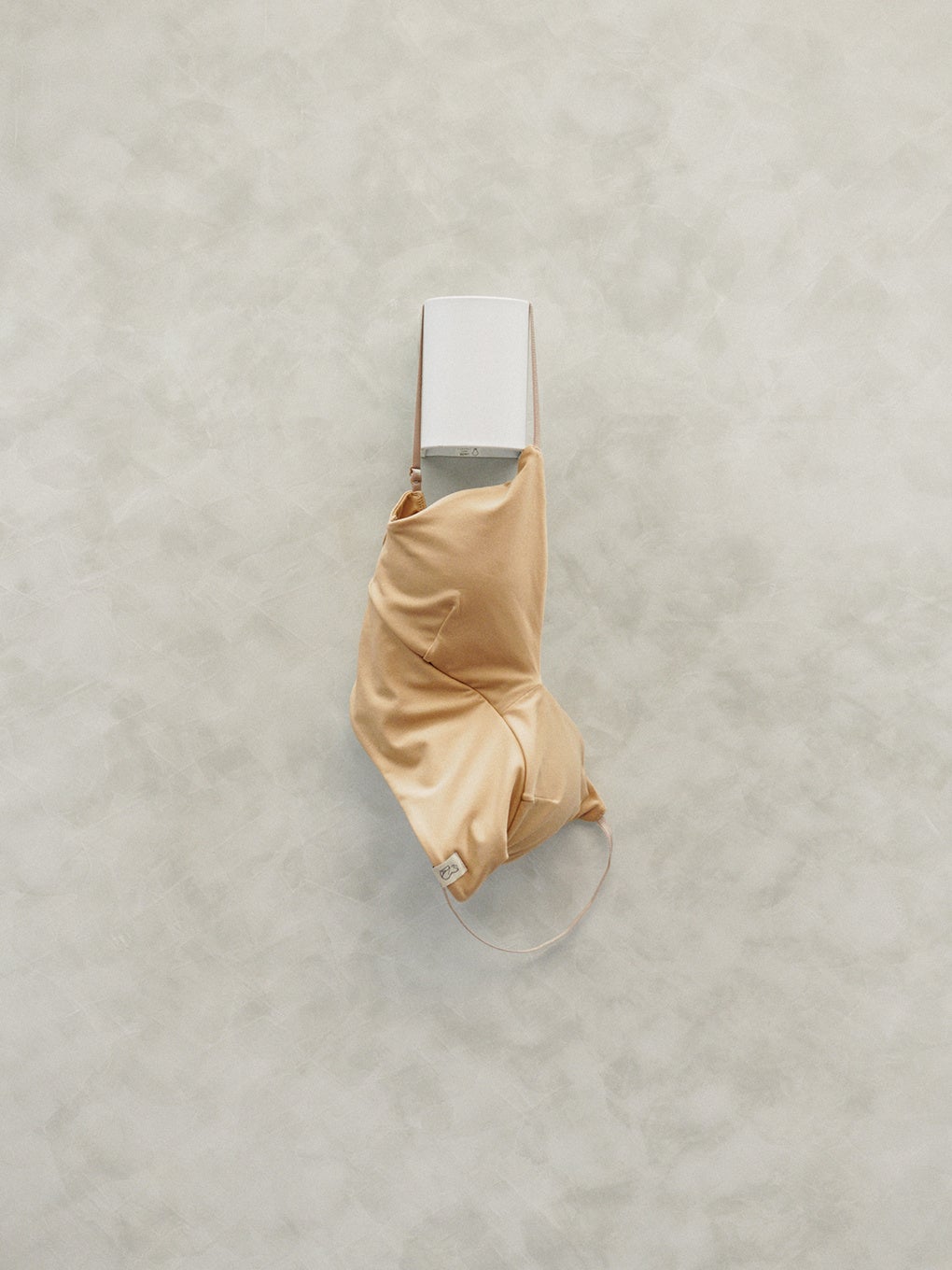 一本のラインで構成したストラップは、あえて見せてもスタイリングの一部として楽しめるデザインに
