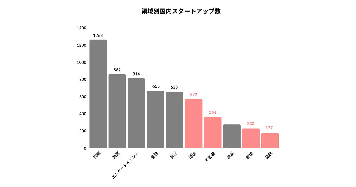 1つ目が「注目する領域におけるスタートアップの数が少なく、オープンイノベーションが適切に働かない」ことです。建設・不動産・まちづくり・物流・環境領域のスタートアップは、他の領域に比べてスタートアップが少なくなっています。オープンイノベーションを十分に働かせるためには、スタートアップが十分に存在する必要があります。