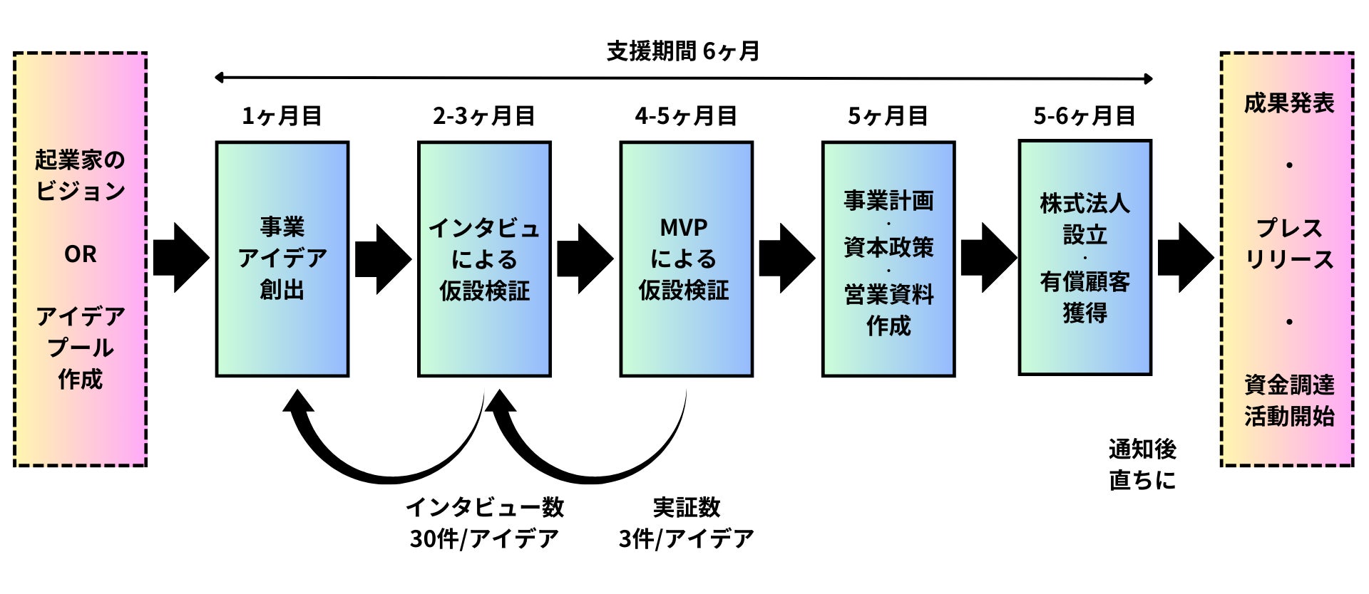 6ヶ月間でアイデア創出から株式法人設立&有償顧客獲得までを一気通貫でサポート!