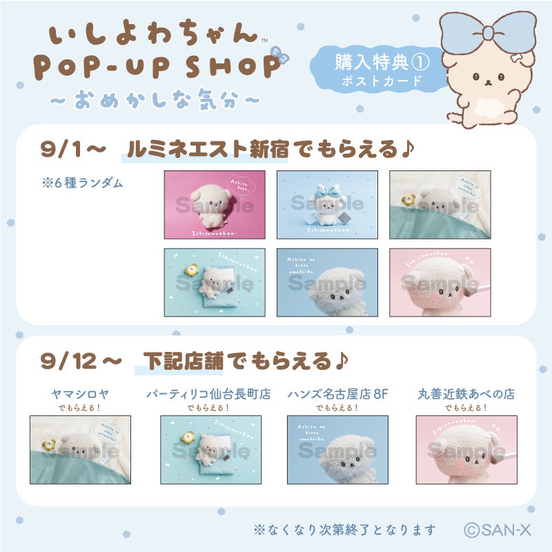 POP-UP SHOP開催店舗で、いしよわちゃんの商品を1,100円(税込)以上お買い上げの方に、ポストカードを1枚プレゼント!