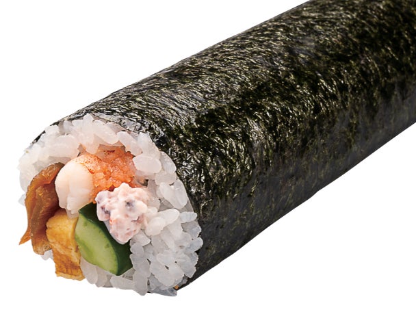 かっぱ寿司人気のいかサラダ(サラダ軍艦のネタ)や人気ネタのひとつであるえび、優しい甘みの玉子焼きなど6種類の食材を巻き込んだおこさまから大人まで楽しめる恵方巻です。