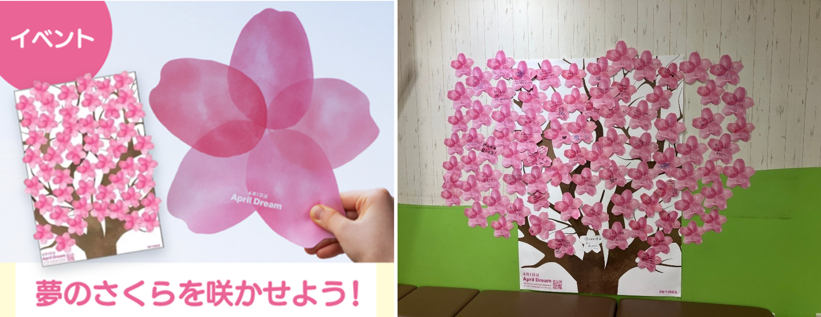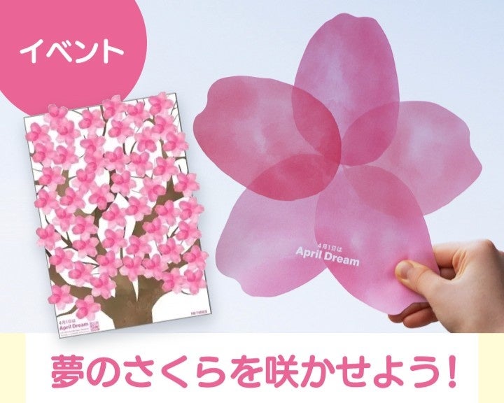 アカチャンホンポにご来店くださったお客さまに桜のカードを配布。桜のカードには自身や家族の“夢”を書いていただき、そのカードを集めて桜の木に咲かせ夢を発信する企画です。