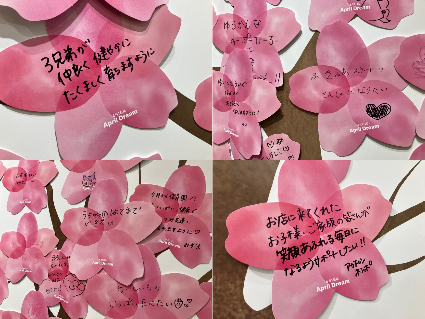 2026年は「夢のさくらを咲かせよう」と題し、「Dreamパートナー」のアカチャンホンポ63店舗で、皆さまの夢を桜の木に咲かせて掲示しました。