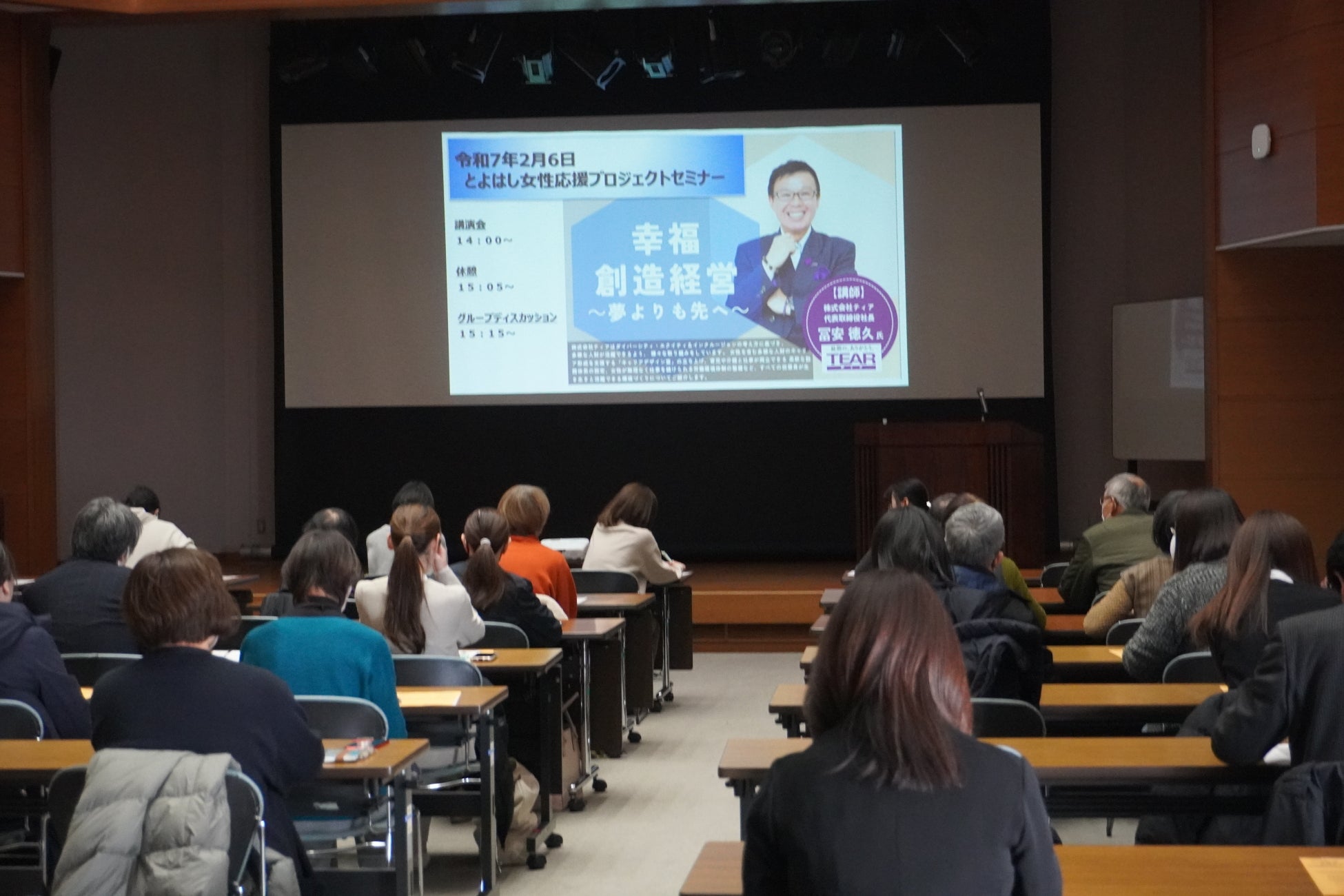 2025年2月6日(木)、愛知県豊橋市役所にて「幸福創造経営〜夢よりも先へ〜」をテーマとした「とよはし女性応援プロジェクトセミナー」を開催しました。本セミナーには、株式会社ティア代表取締役社長である冨安徳久氏が登壇、自身のキャリアや経営者としての経験、人生観を交えながら、仕事への向き合い方や社会貢献の意義について語りました。
