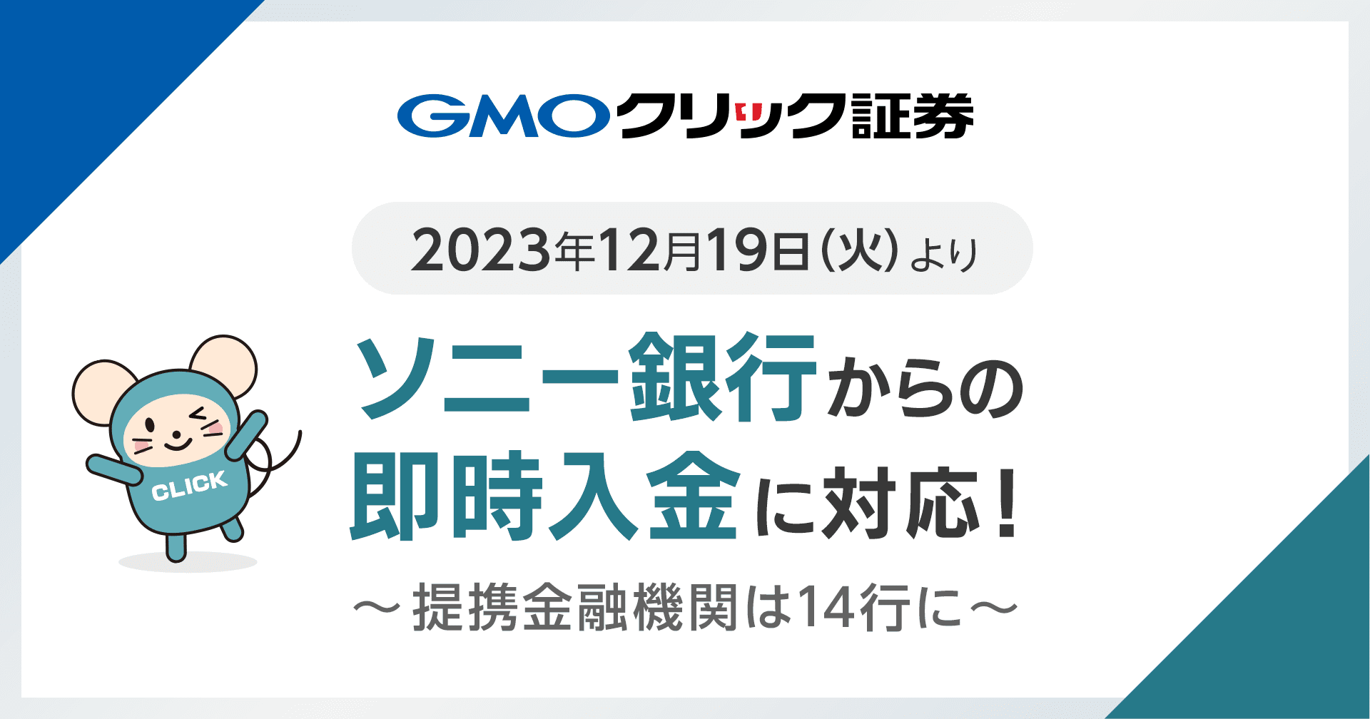 GMOクリック証券:「ソニー銀行」からの即時入金サービスに対応