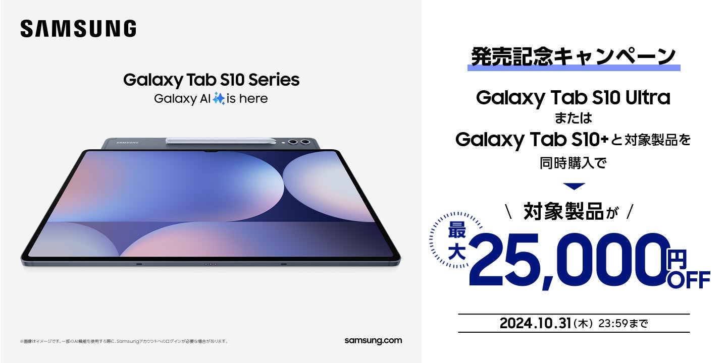 また、本日からの対象期間中に対象販路で「Galaxy Tab S10シリーズ」をご購入いただいたお客様全員に、Samsungオンラインショップ(https://www.samsung.com/jp/offer/)で対象製品をお得にご購入いただける「発売記念キャンペーン」※を開催いたします。