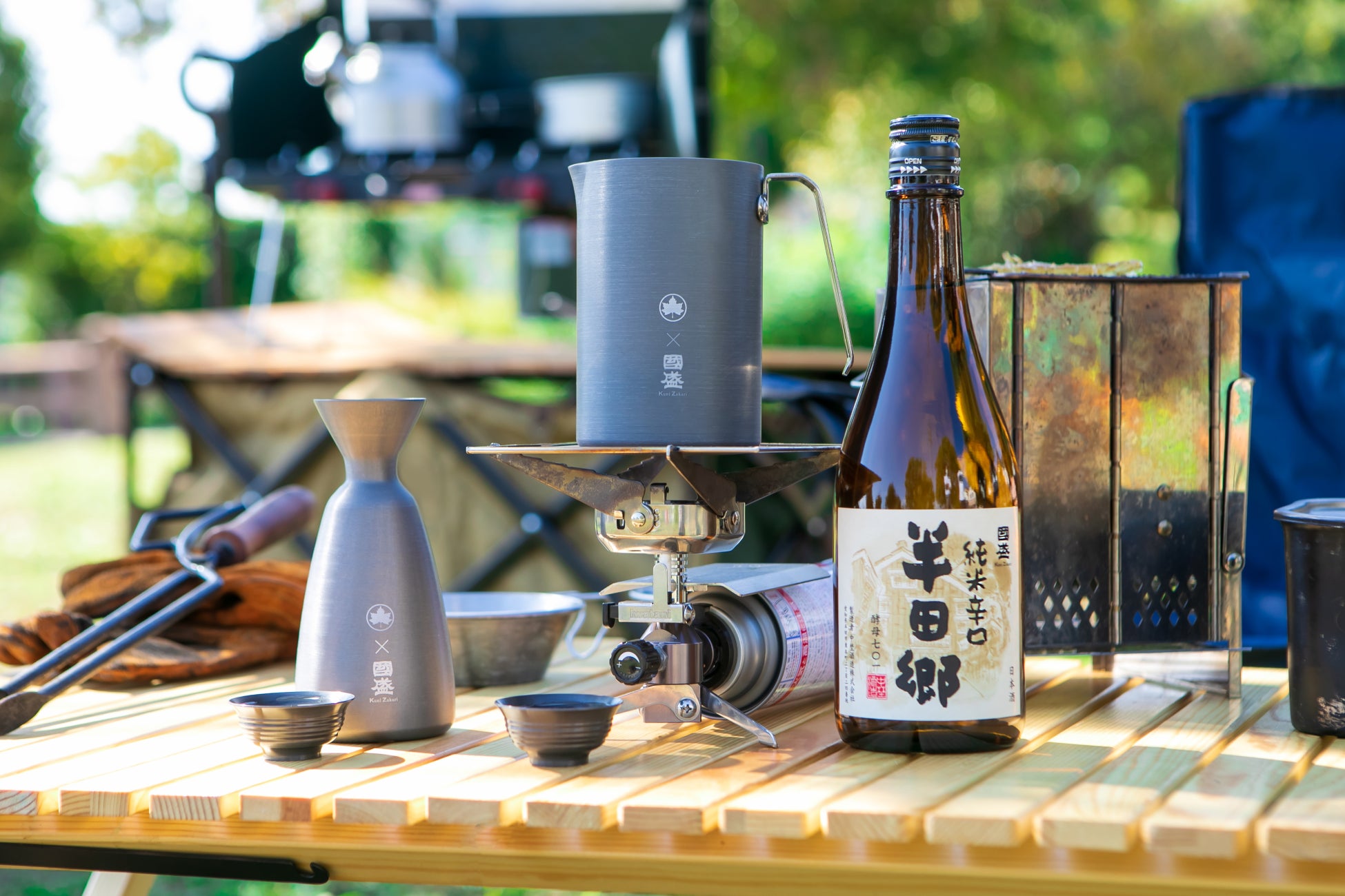 老舗酒蔵「中埜酒造」×LOGOSコラボ第2弾!野外で日本酒が楽しめる「半田郷とLOGOS アウトドア熱燗セット」新発売!