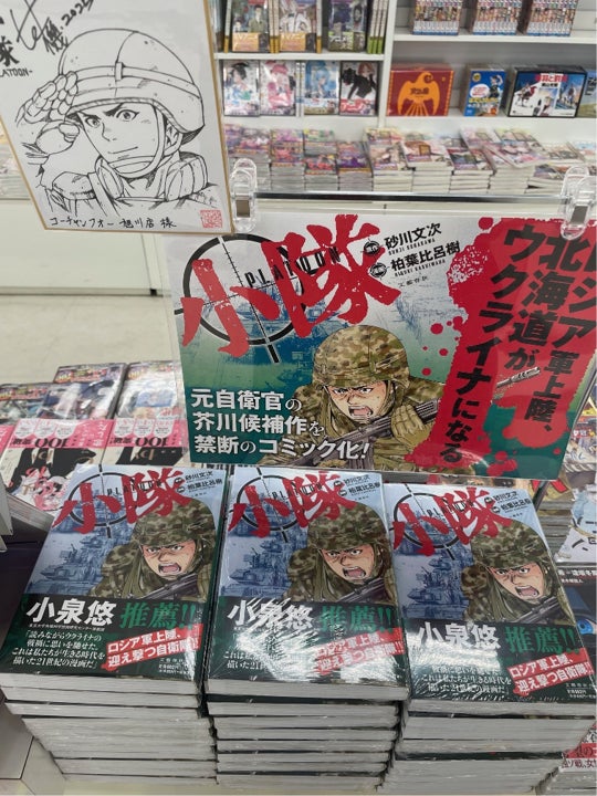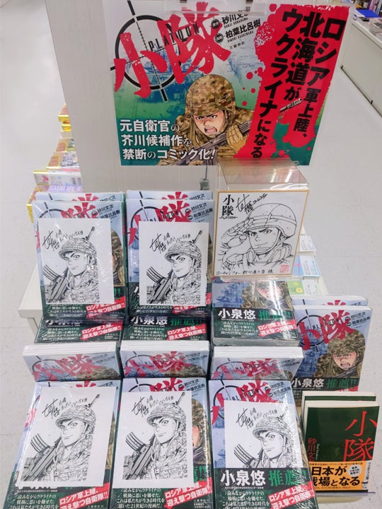 『小隊』の舞台が北海道ということで、道内の書店を中心にポップの展示や販売特典を重点的に展開しました。おかげ様で反響が大きく、予想を上回る売り上げを記録しております。北方領土が指呼の距離にある道民の方々にとって、《自衛隊VSロシア軍》は決して他人事ではない──そんな“温度差”をひしひしと感じた次第です。