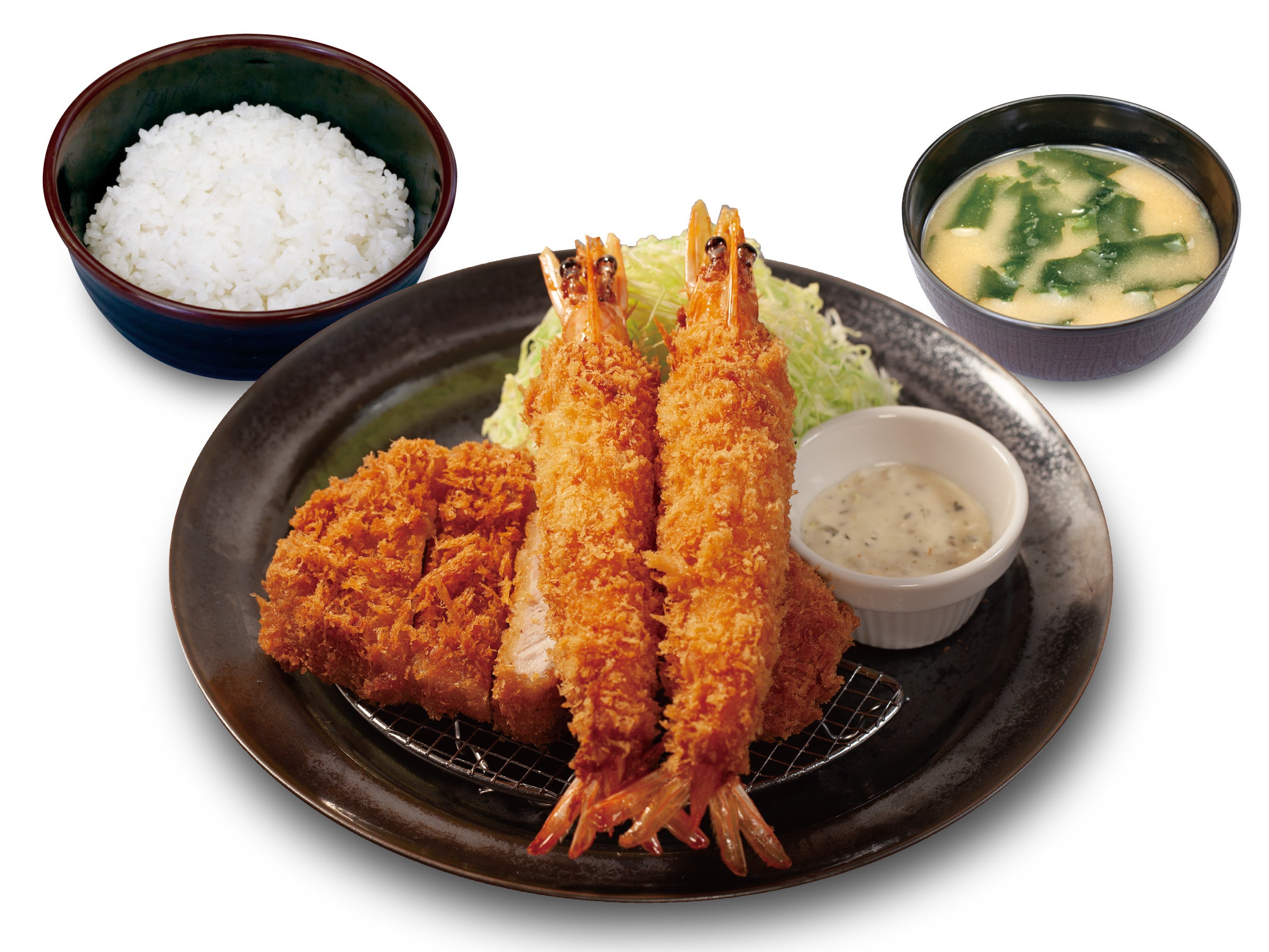 国産豚 麦小町ロースかつ&有頭大海老フライ定食(1尾)1,560円/(2尾)2,030円