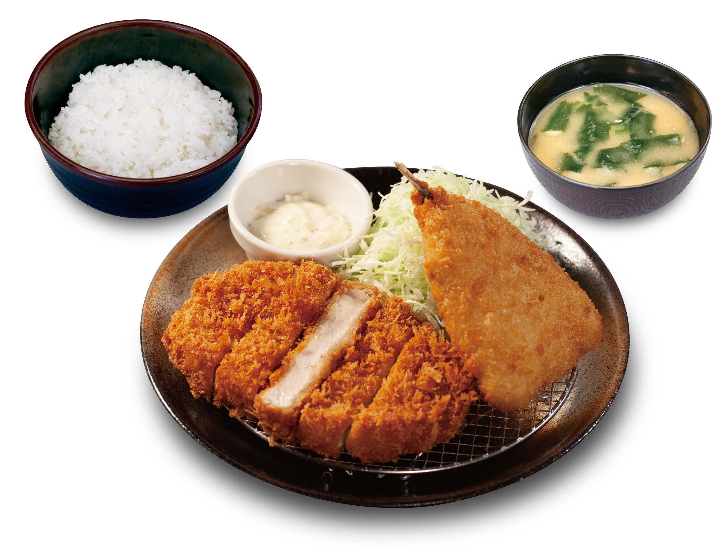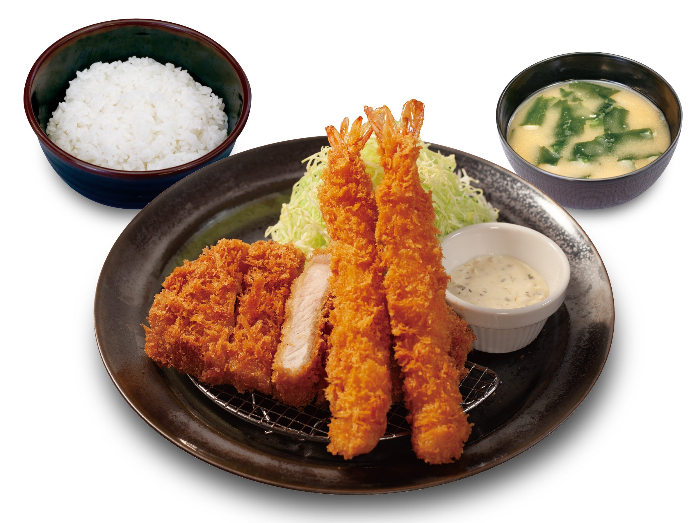 国産豚 麦小町ロースかつ&海老フライ定食 (1尾)1,360円/(2尾)1,630円