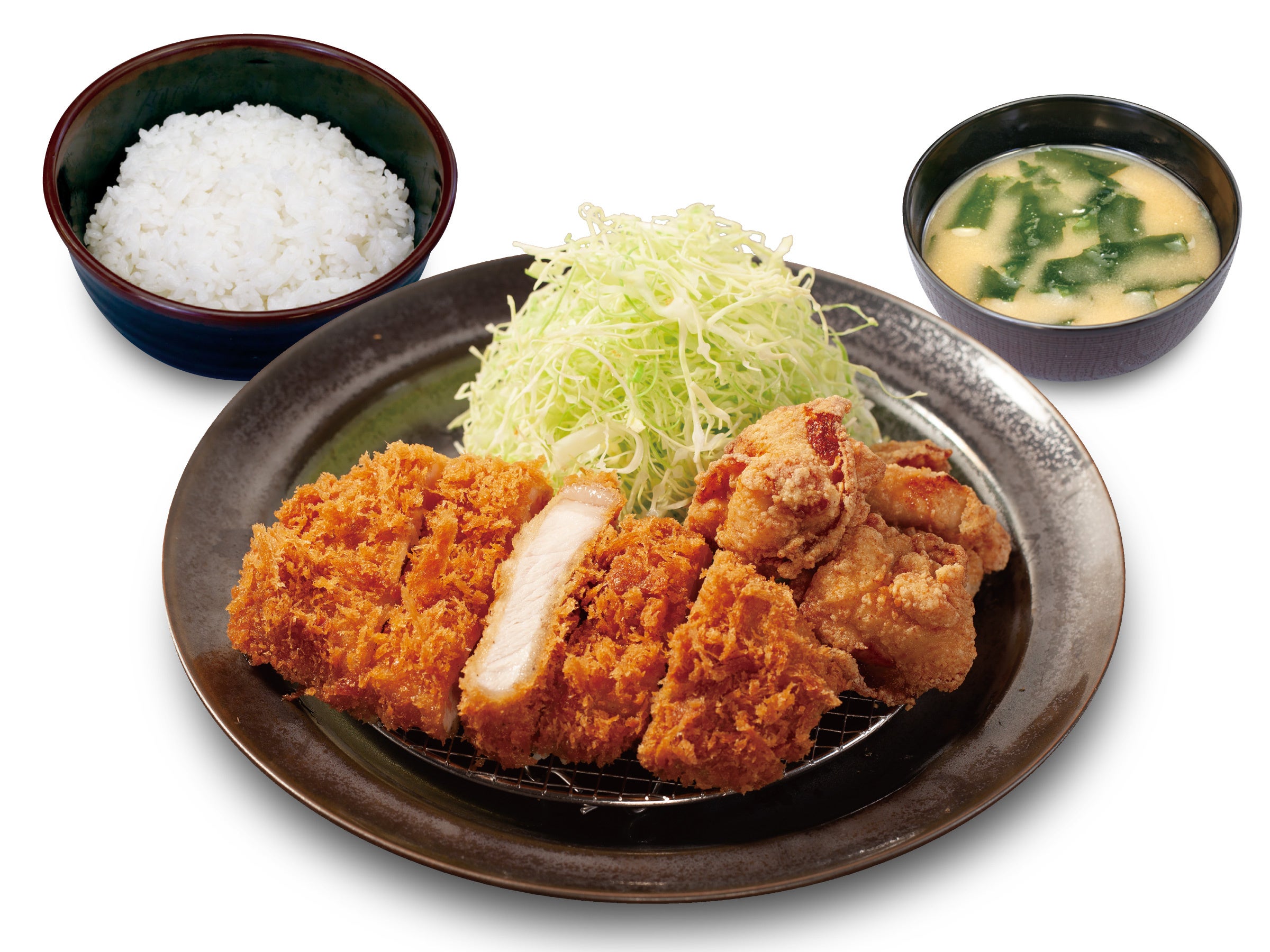 国産豚 麦小町ロースかつ&唐揚げ定食 1,360円