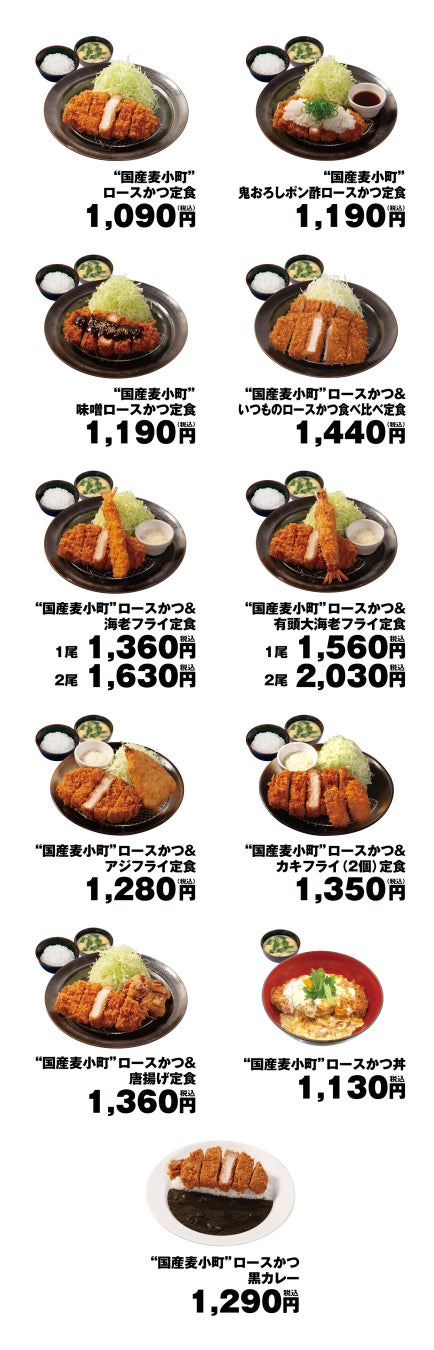 商品名 国産豚 麦小町ロースかつ定食 1,090円