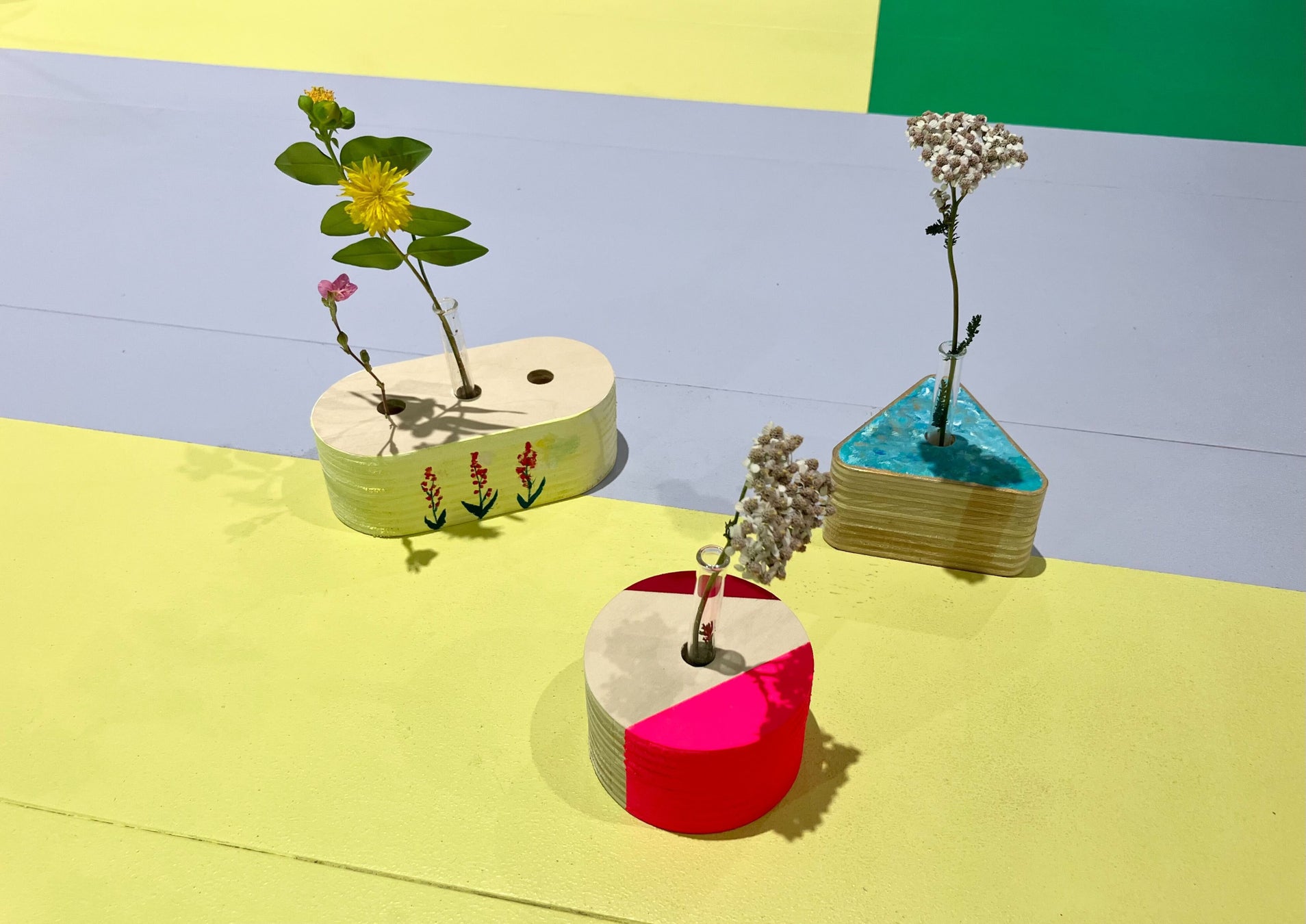 日本の国土は約7割が森林で、その内の約4割が人工林です。人工林は間伐を行い、木の密度を管理するなど手入れが必要ですが、間伐材の利用先が減ってしまった等の理由で放置されている森もあるのが現状です。森を健康に保つためにきちんと使っていきたい素材「間伐材」をShopBot(ショップボット)というマシンを使って様々な形に切り出し、フラワーベースを作ります。