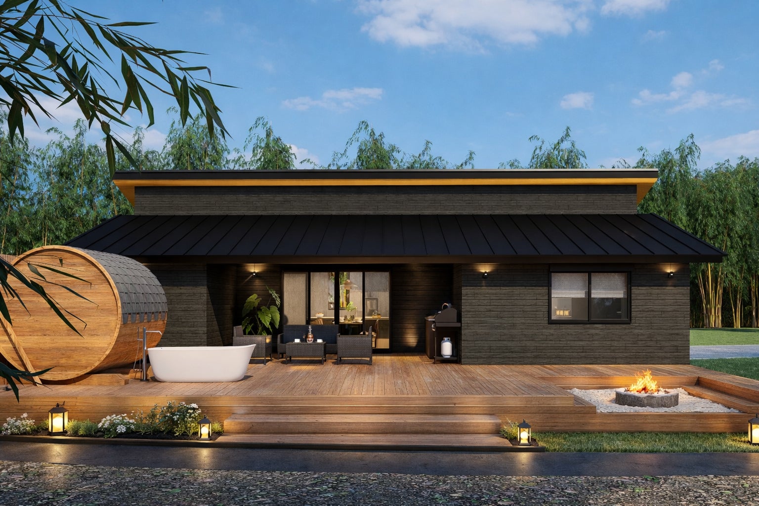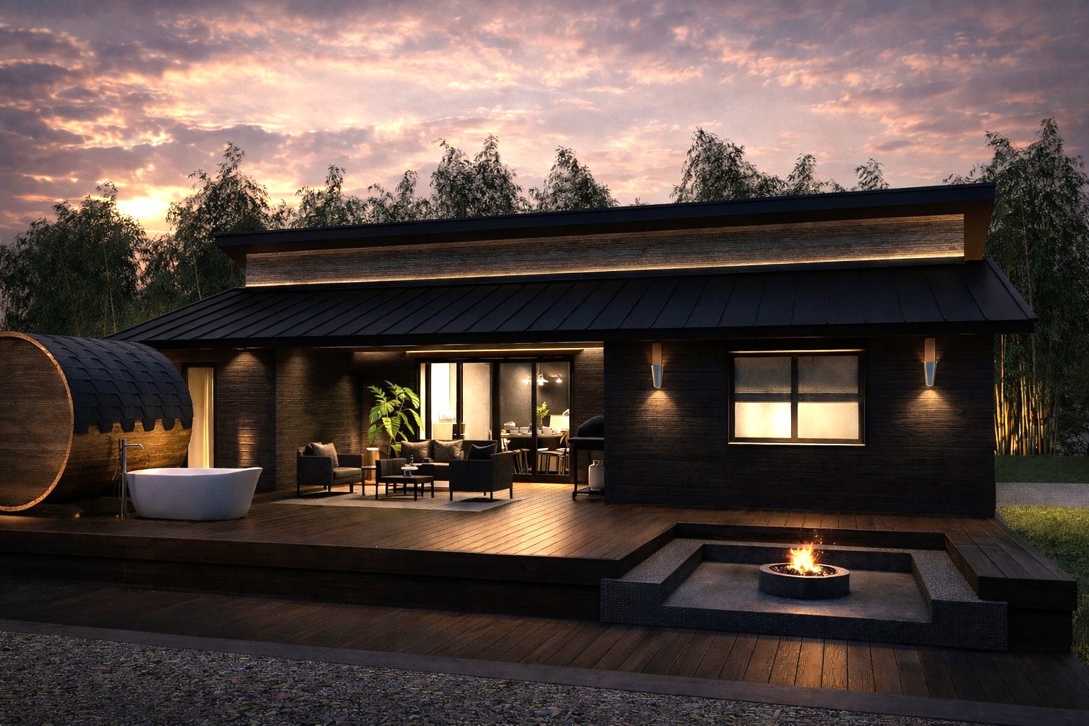 専用サウナと緑に囲まれたファイヤーピットを備え、人目を気にせず静かに過ごせる“隠れ家”のような空間です。