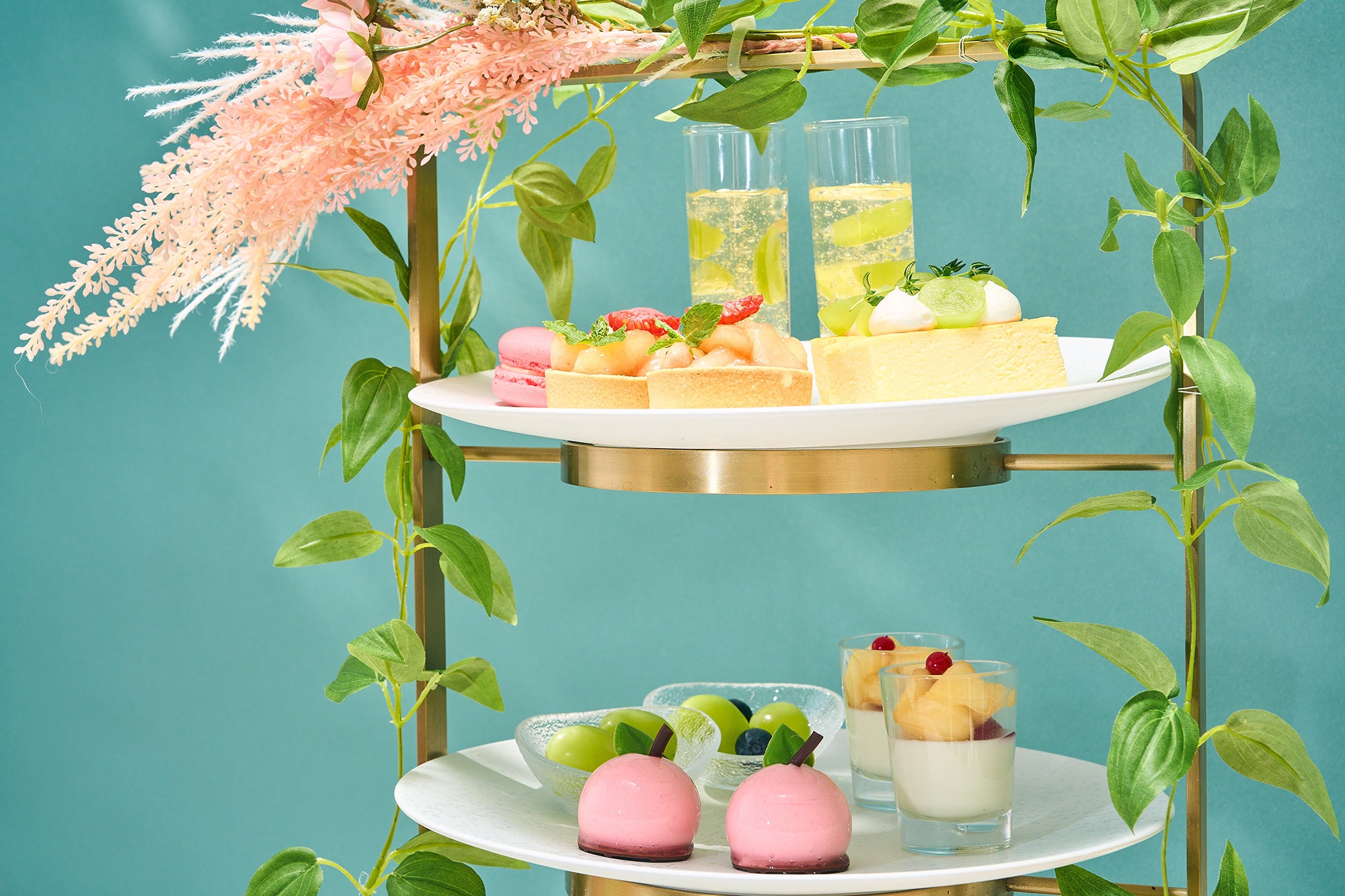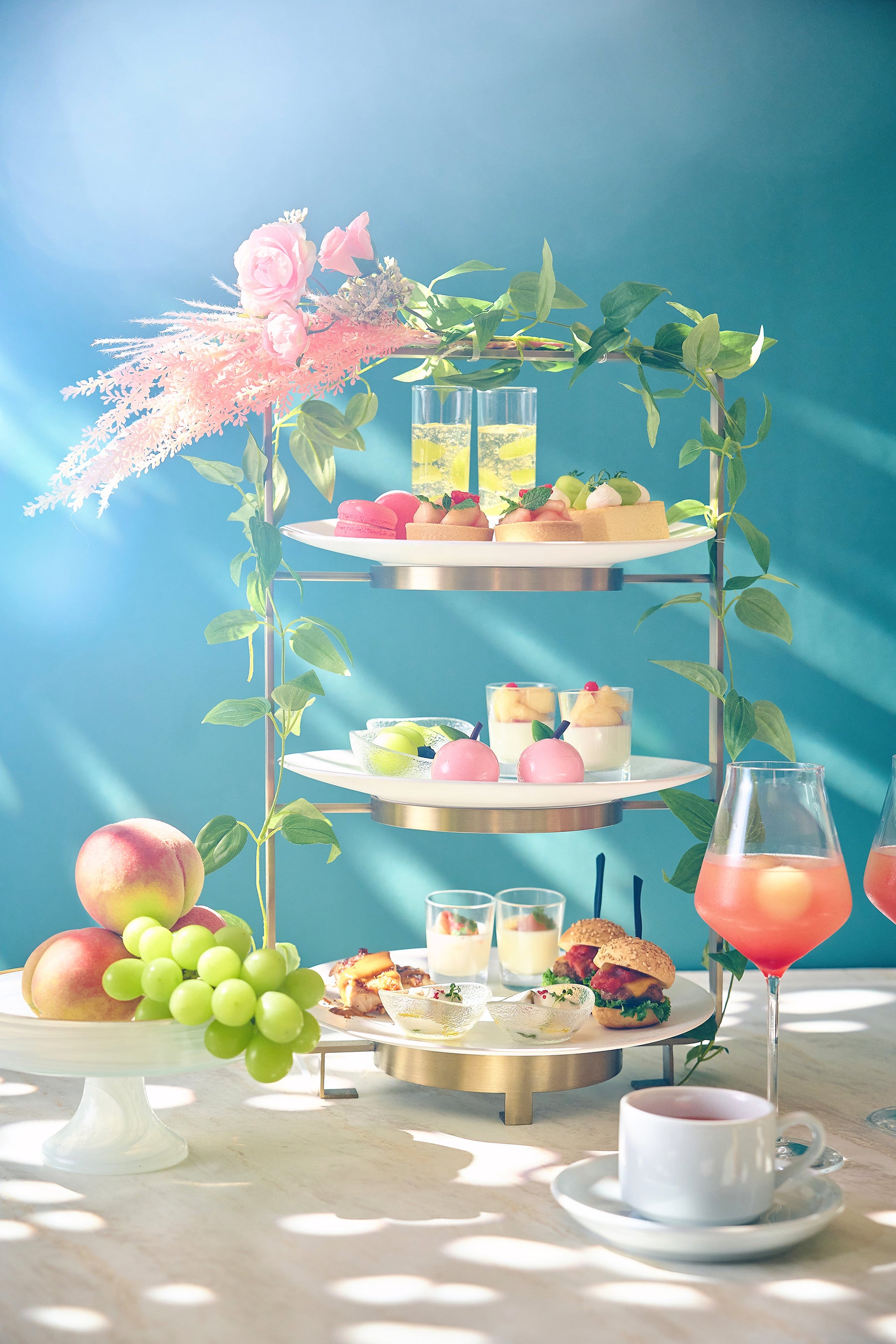 夏の眩しい陽射しと緑あふれる空間で、桃とシャインマスカットを存分に味わうアフタヌーンティーを、ご友人や恋人と一緒にご堪能ください。