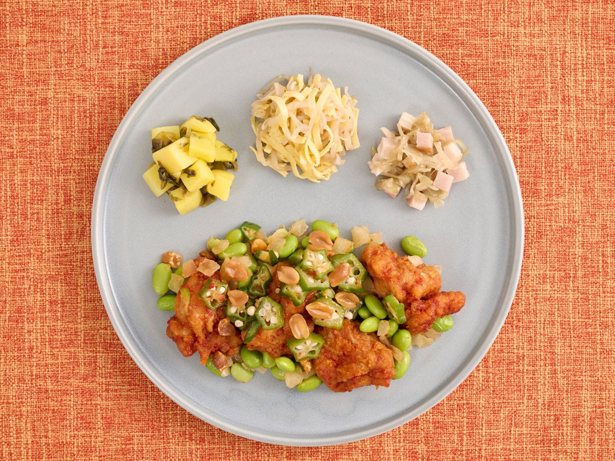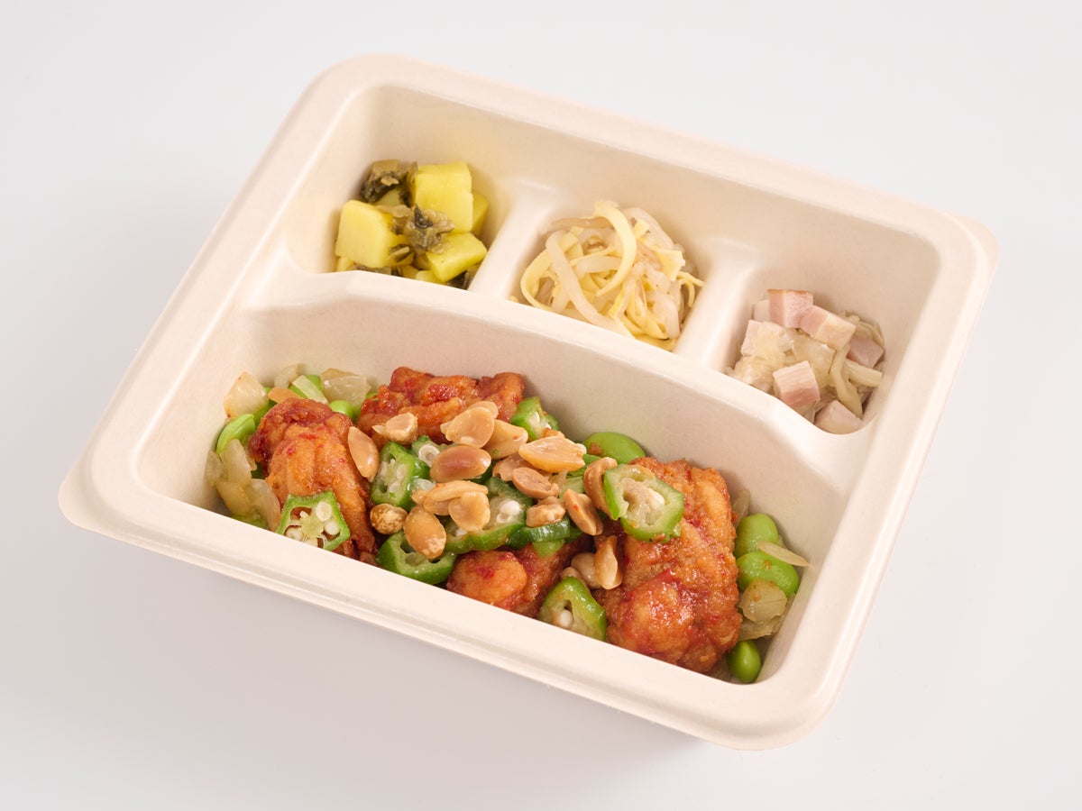 今回新登場する「トマトヤンニョム〜夏野菜添え〜」は、ナッシュで人気のから揚げメニューを夏らしくアレンジした一品です。隠し味にトマトの旨みを効かせた特製ヤンニョムだれを絡め、甘辛さの中にコクをプラスしました。さらに、枝豆とオニオンスライスで爽やかさを演出し、オクラ&ピーナッツのトッピングが初夏の彩りと食感のアクセントに。定番の美味しさを守りながらも、ナッシュオリジナルの工夫で夏でも食べやすく、最後まで飽きのこない一品に仕上げています。コクや甘みのバランスを考えた特製ダレが、揚げ物の重たさを感じさせず、食欲が落ちがちな季節でもしっかり楽しめるのがポイントです。