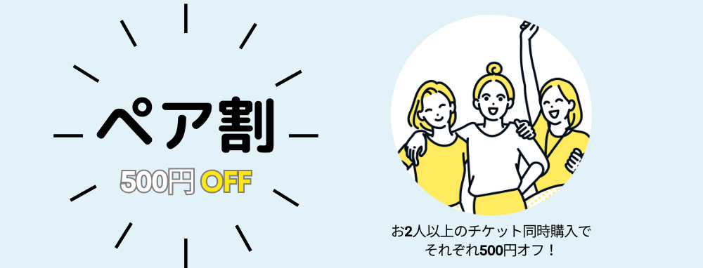 2名以上でチケットを購入すると、それぞれ500円オフになるペア割チケットを数量限定で発売中! お友だちや、家族、一緒に運動をしたい人を誘って楽しく体を動かしましょう!
