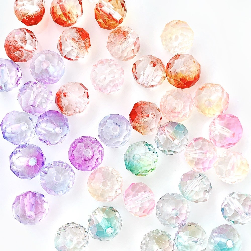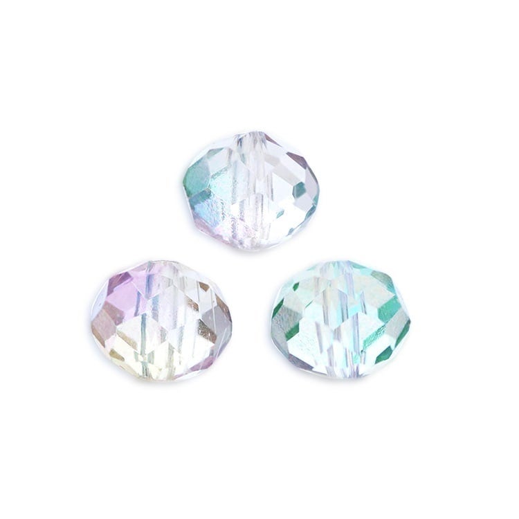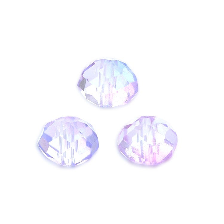クリア色のボタンカットビーズの表面に、絶妙な色合いがとても美しいグラデーションカラーの塗装を施したパーツとなります。