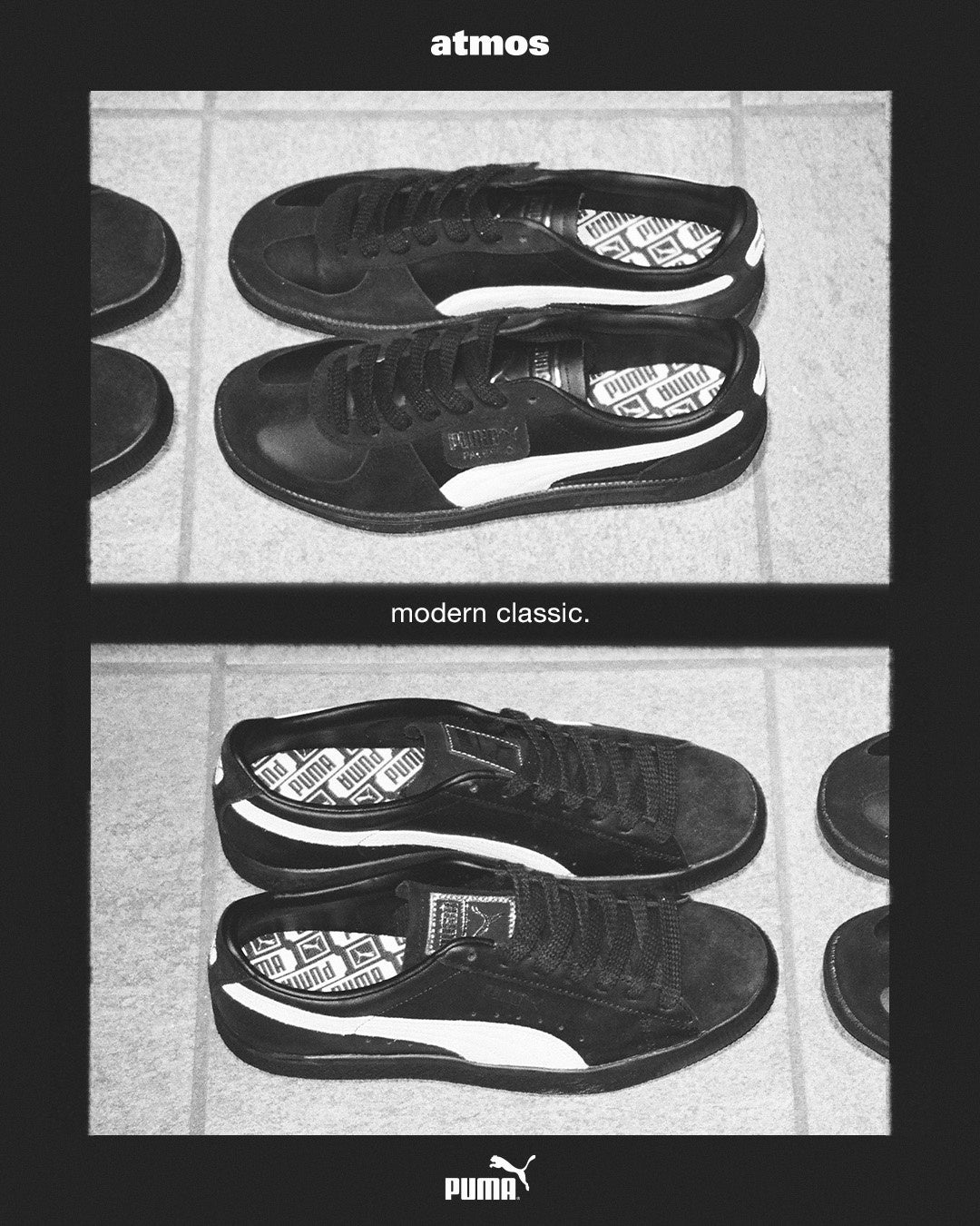 PUMAを語る上で欠かせない「SUEDE」と「Parelmo」をModern Classic(現代的な定番)ラインとして、オールブラックにホワイトアクセントのシンプルな装いかつプレミアムにアップデートしたatmos別注が登場。