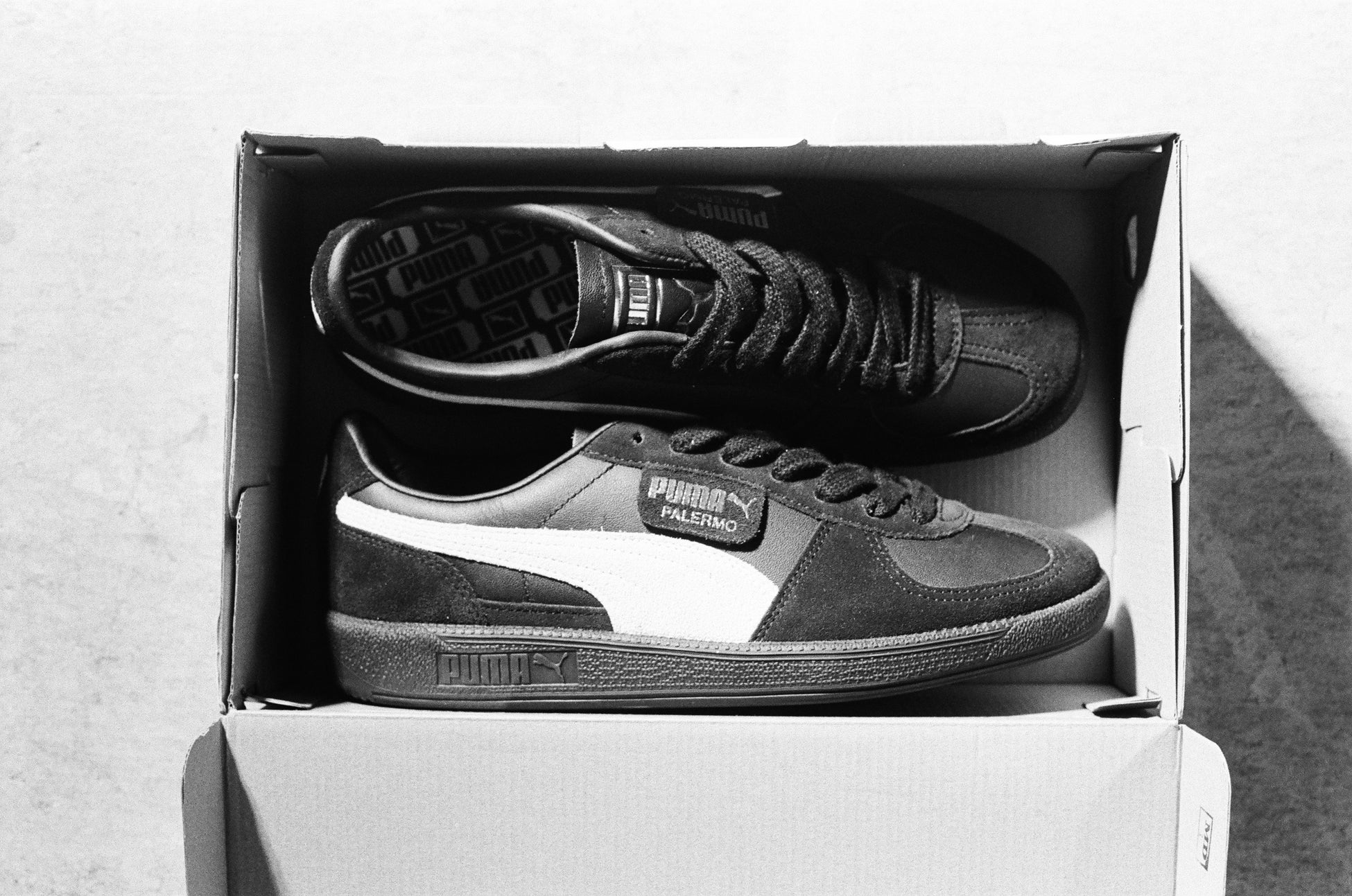 PUMAを代表する定番人気モデル「SUEDE」と「Palermo」がプレミアムにアップデートされたブラックベース×ホワイトのシンプルなデザインでatmosから登場