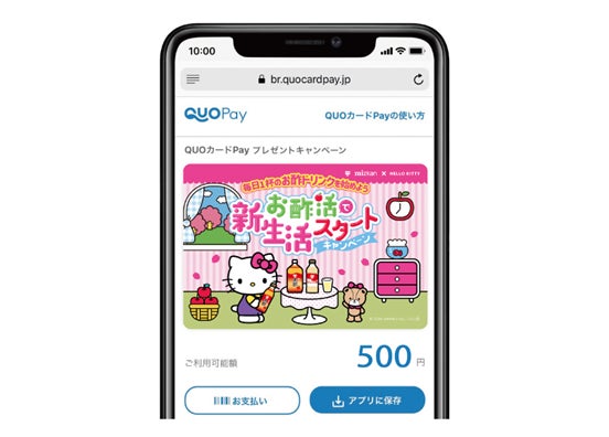 ハローキティ オリジナルQUOカードPay 500円分 : 1,000名様
