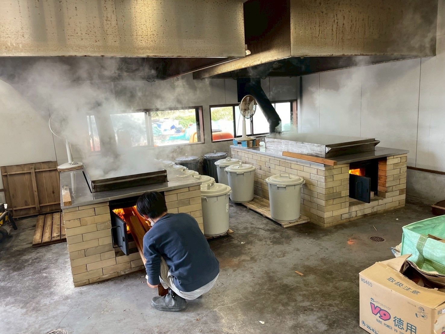「誕生の塩」は海水浴場水質調査で最上位のAAランクに認定された美しい竹野の海水を汲み上げて平釜で丹念に炊く「釜焚き製法」。沸騰させないようにじっくりと炊くため、ミネラルを多く含んだキラッと光る粒の結晶が特徴です。使用する燃料の薪は竹野エリアに漂着した流木や廃材などを再利用しており、環境負荷の低減にも貢献しています。
