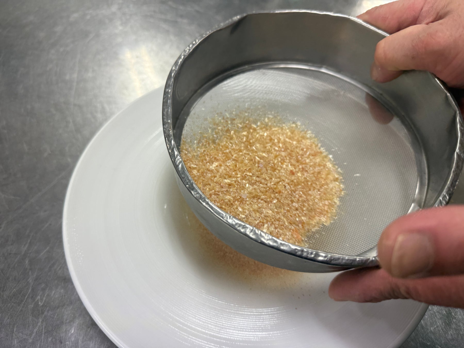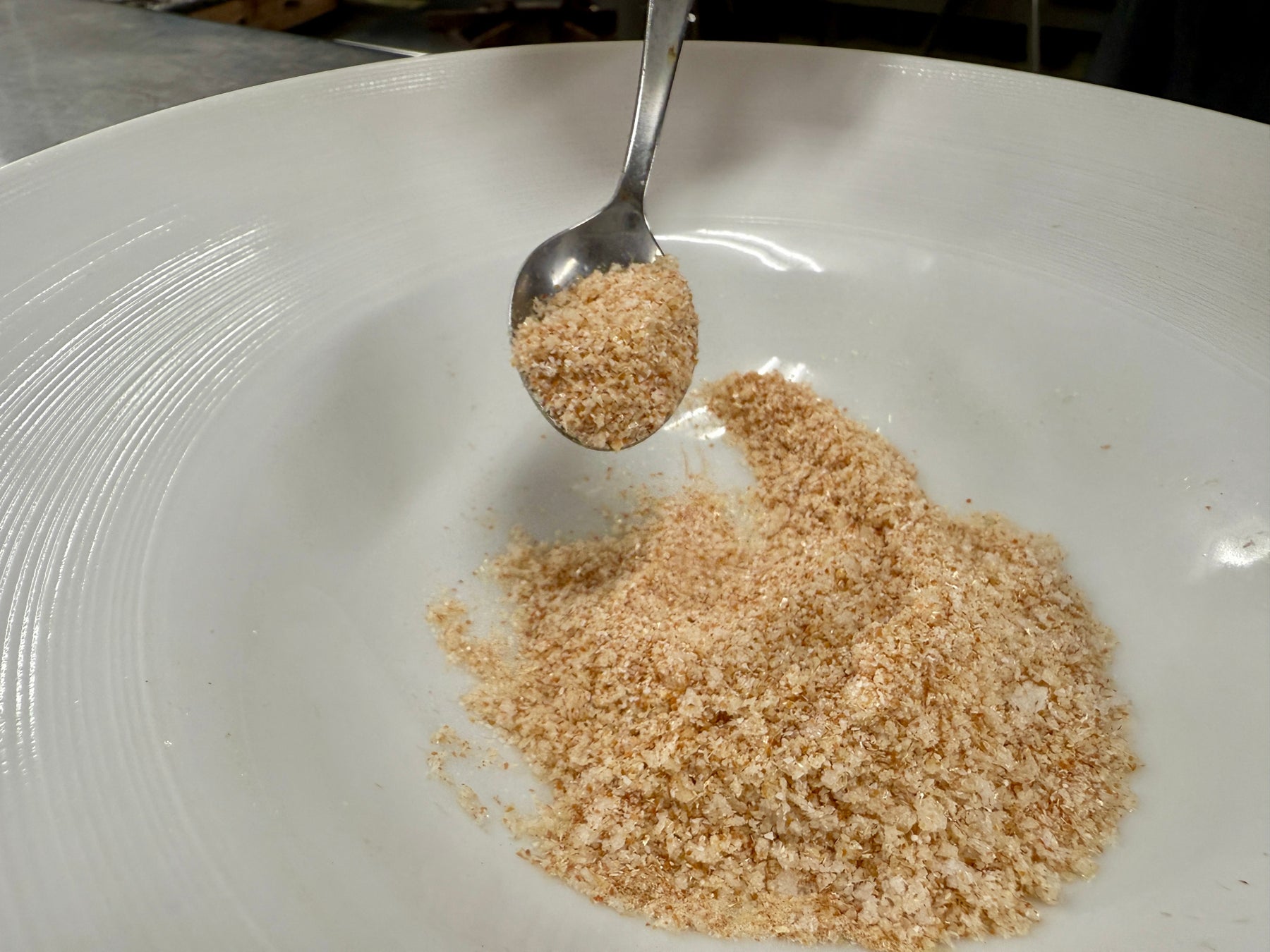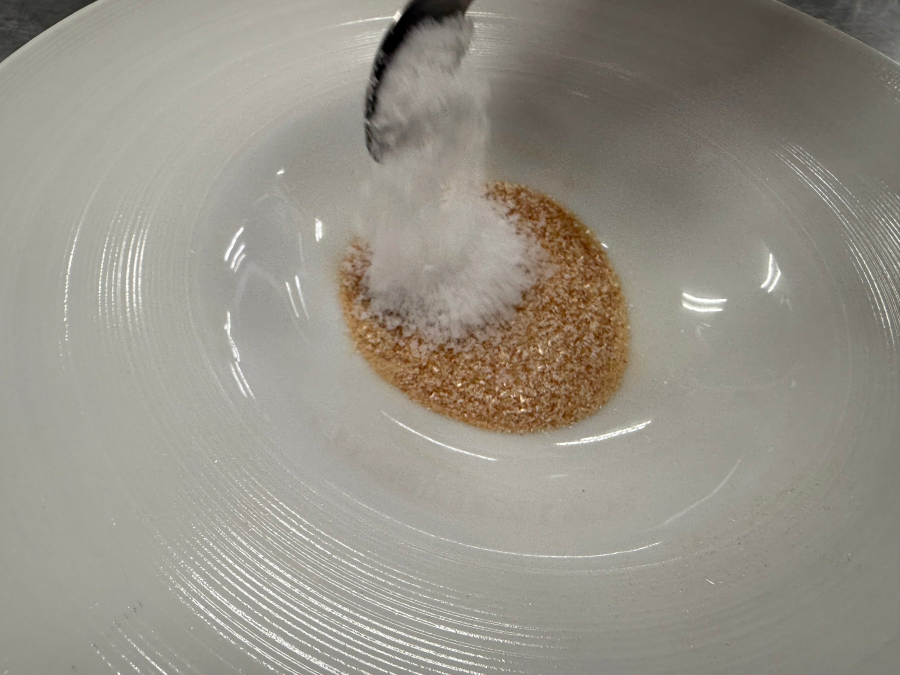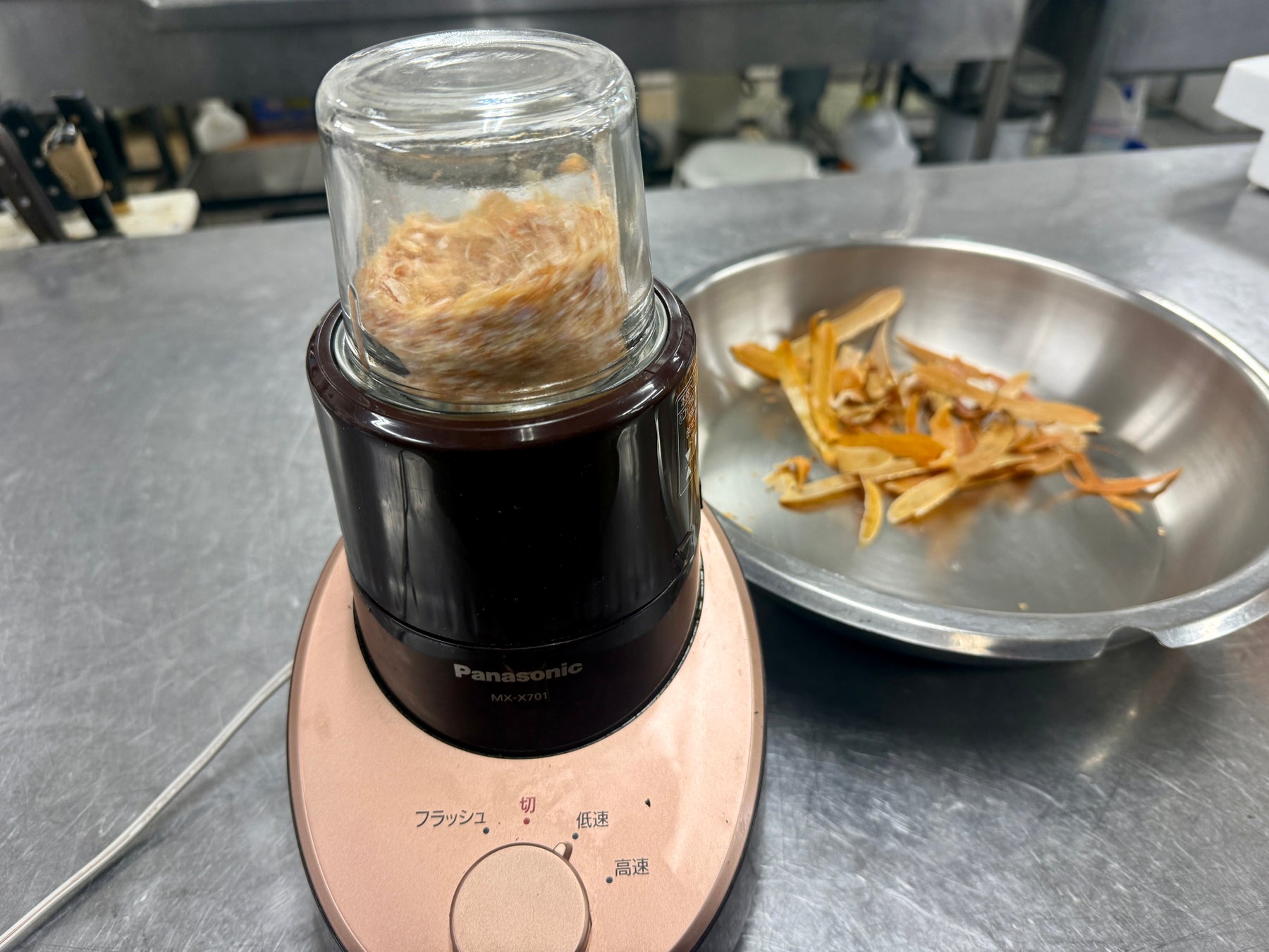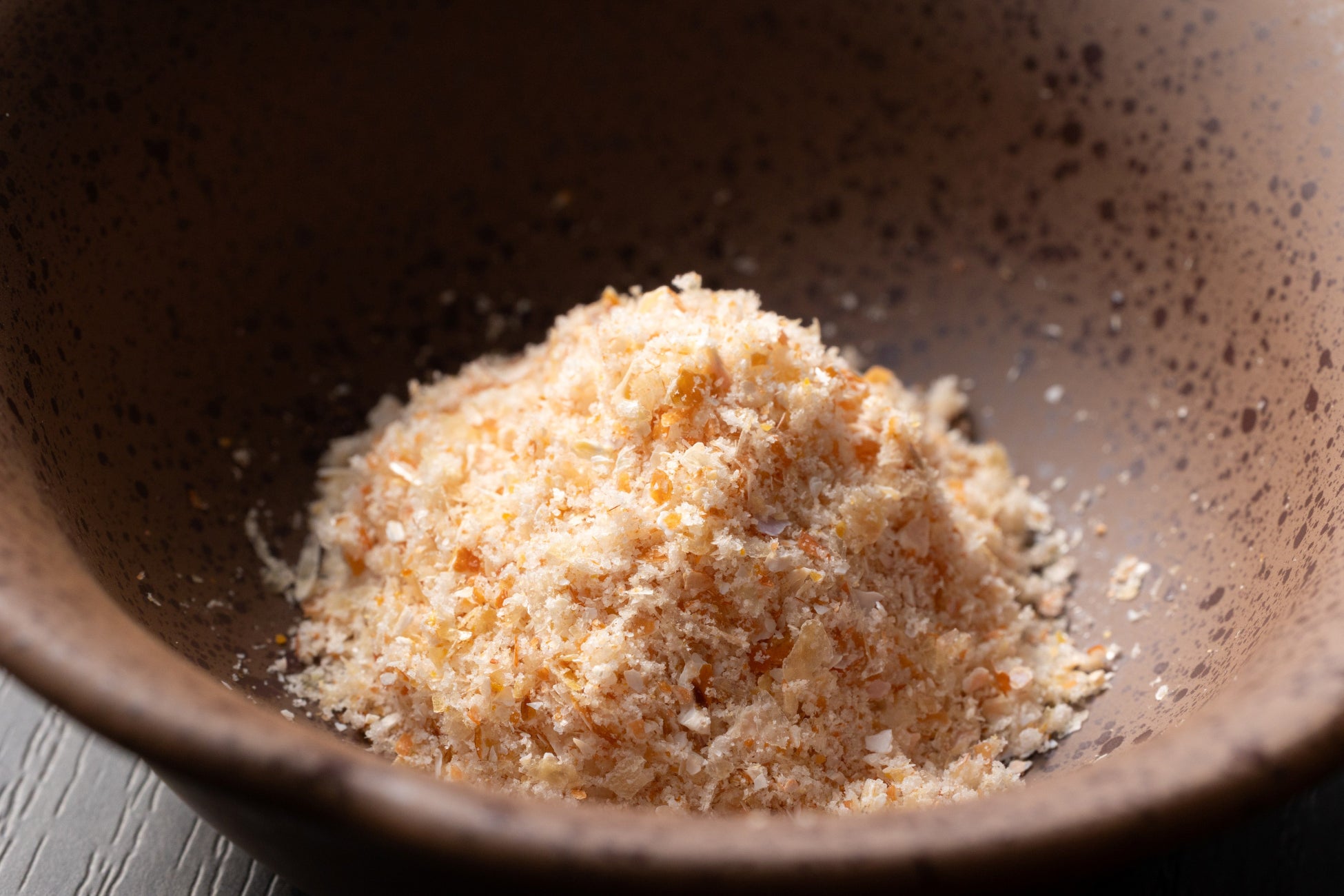 かに殻は焼き上げてフードプロセッサーで粉末にし、かに殻の粉末と誕生の塩を同量で合わせて【かに塩】を完成させます。誕生の塩にはミネラル分が豊富に含まれており、まろやかな塩味と風味あるかに殻の粉末との相性抜群!食材のおいしさを引き立てるのは誕生の塩ならではの味わいです。